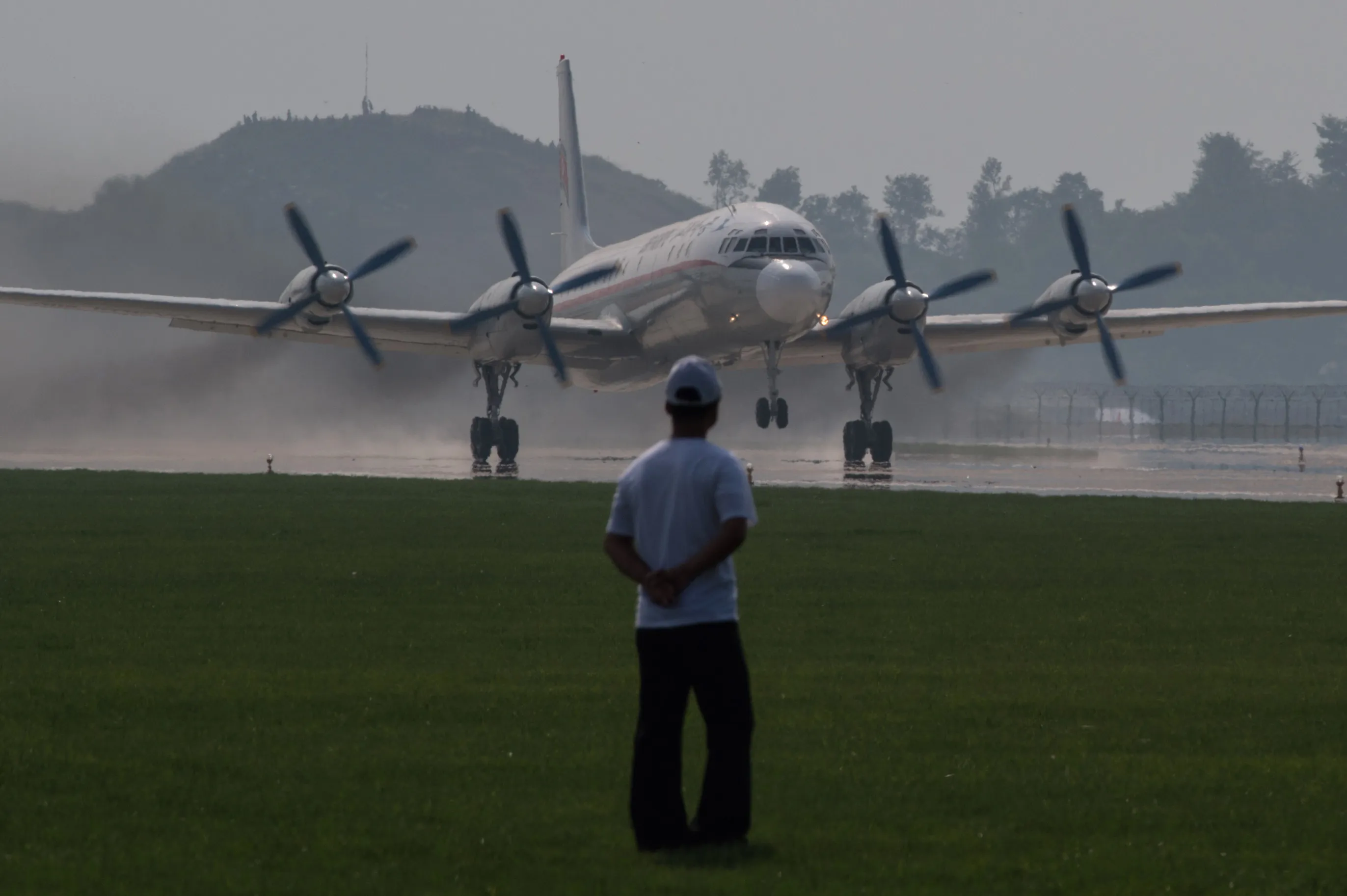 This photo taken on September 24, 2016 shows an Ilyushin Il-18 taking off during the first Wonsan Friendship Air Festival in Wonsan. (Photo by Ed Jones/AFP Photo)
