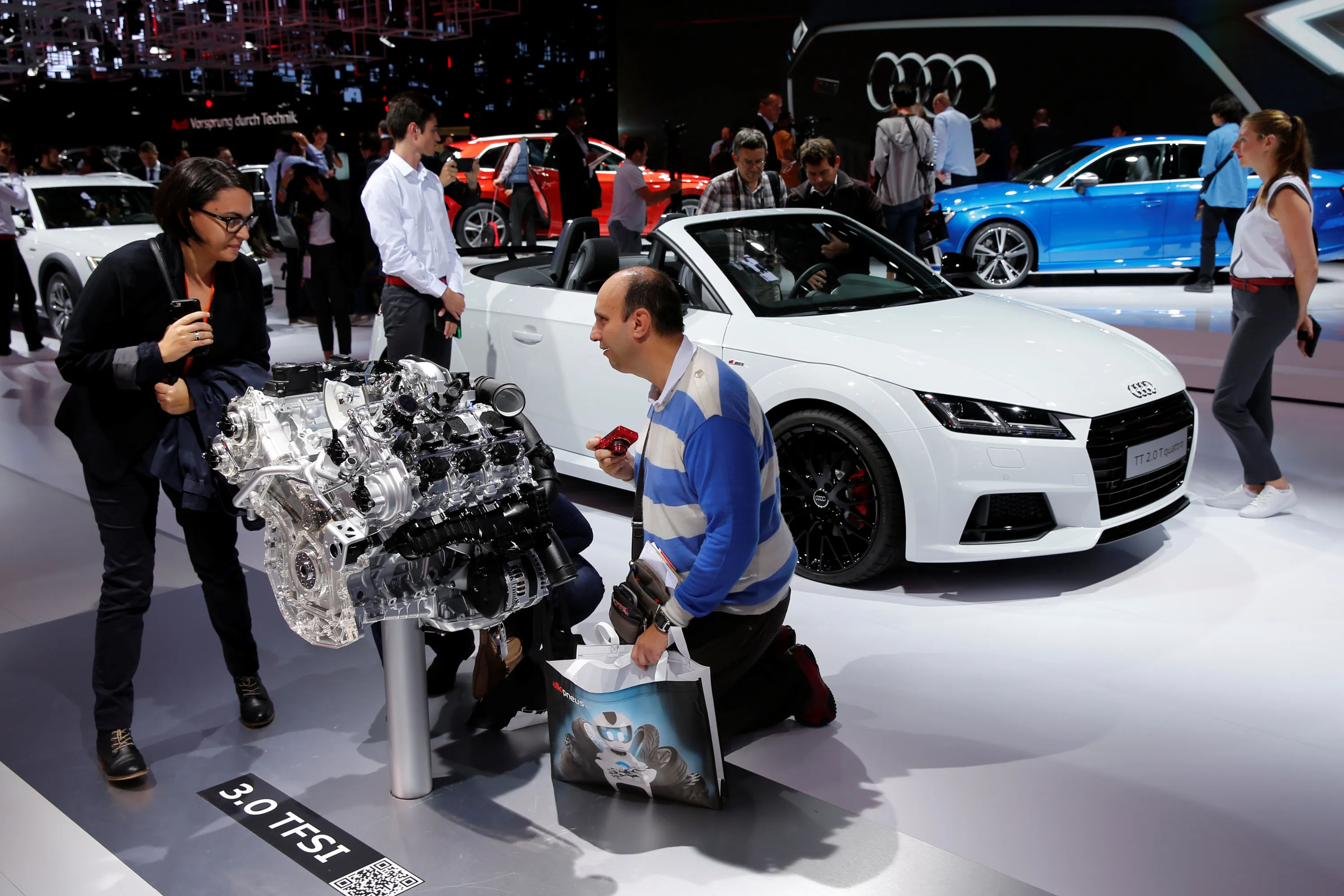 An Audi 3.0 TFSI engine is displayed on media day at the Paris auto show, in Paris, France, September 30, 2016. (Photo by Benoit Tessier/Reuters)