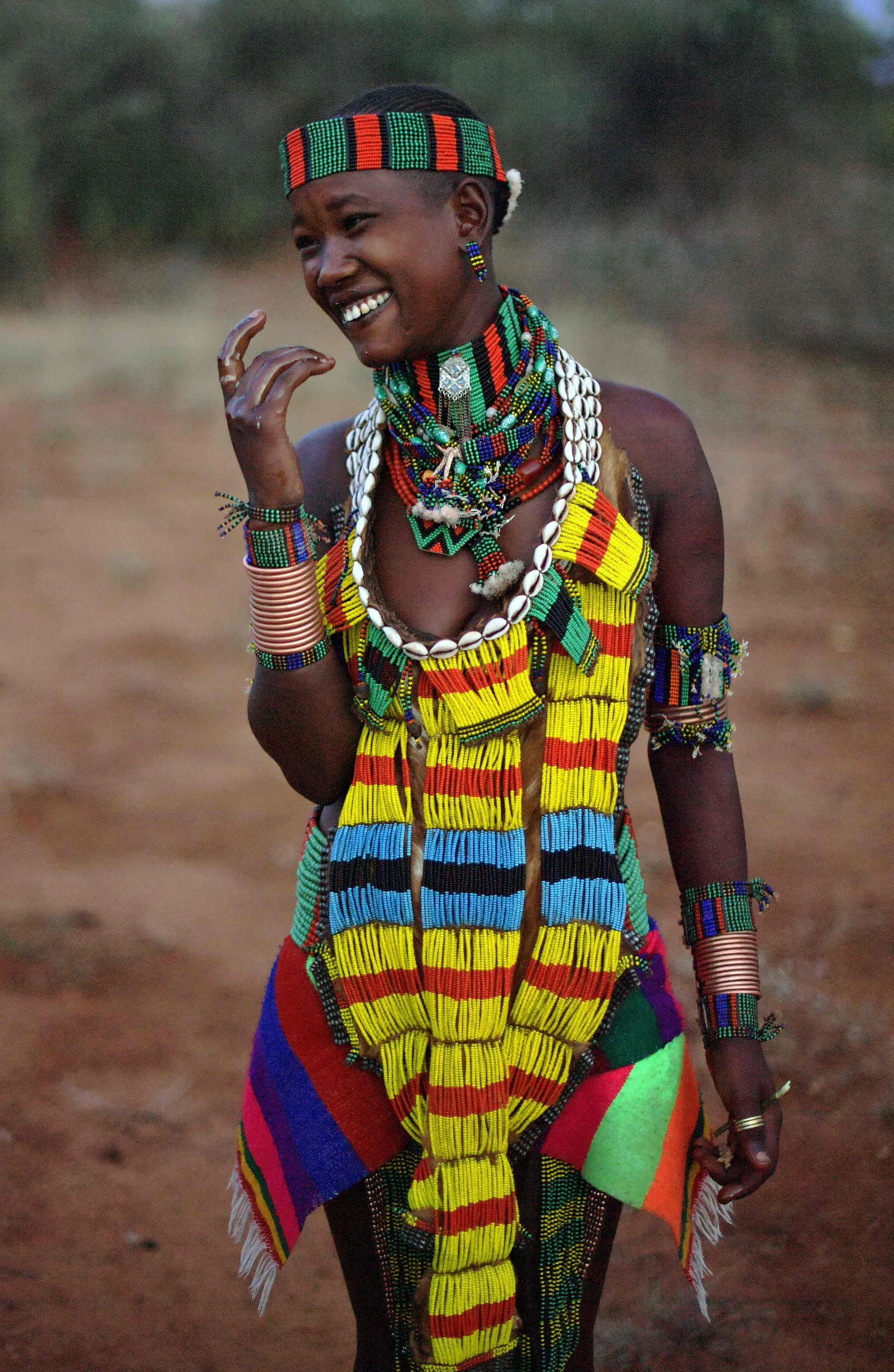 A woman from the Bena tribe eats honey collected from a tree in Ethiopia's southern Omo Valley region near Turmi on September 20, 2016. The Bena are a Nilotic ethnic group in Ethiopia and known for keeping bees. The construction of the Gibe III dam, the third largest hydroelectric plant in Africa, and large areas of very 'thirsty' cotton and sugar plantations and factories along the Omo river are impacting heavily on the lives of tribes living in the Omo Valley who depend on the river for their survival and way of life. Human rights groups fear for the future of the tribes if they are forced to scatter, give up traditional ways through loss of land or ability to keep cattle as globalisation and development increases. (Photo by Carl De Souza/AFP Photo)
