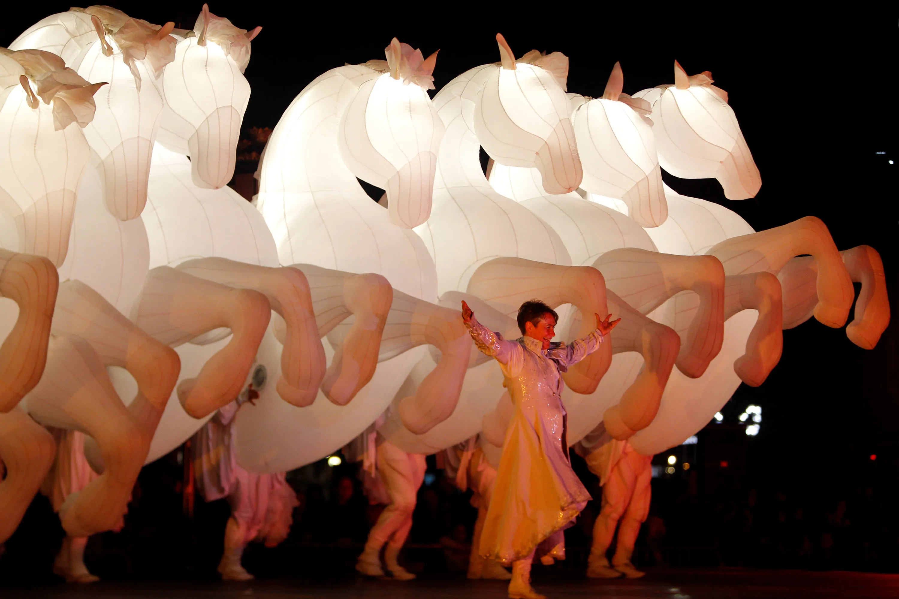 Acrobats from Compagnie des Quidams perform during the “White Night” cultural event in Skopje, Macedonia October 1, 2016. (Photo by Ognen Teofilovski/Reuters)