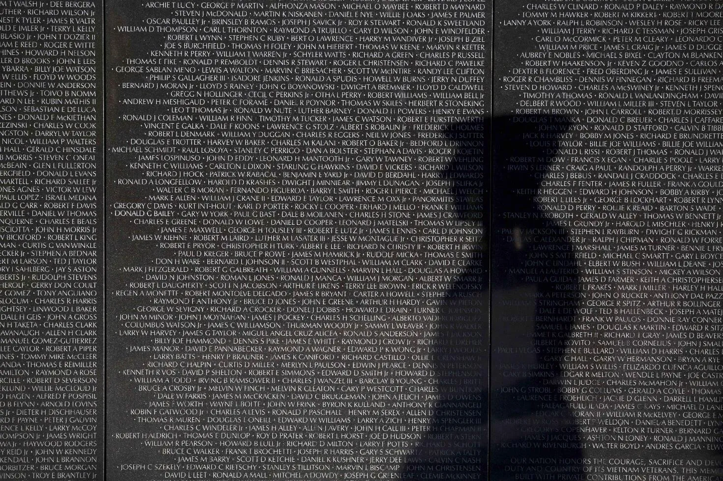 A member of the Joint Services Honor Guard is reflected on the Vietnam Veterans Memorial prior to a wreath laying ceremony to commemorate the 50th anniversary of the Vietnam War, March 29, 2016 in Washington, DC. (Photo by Drew Angerer/Getty Images)