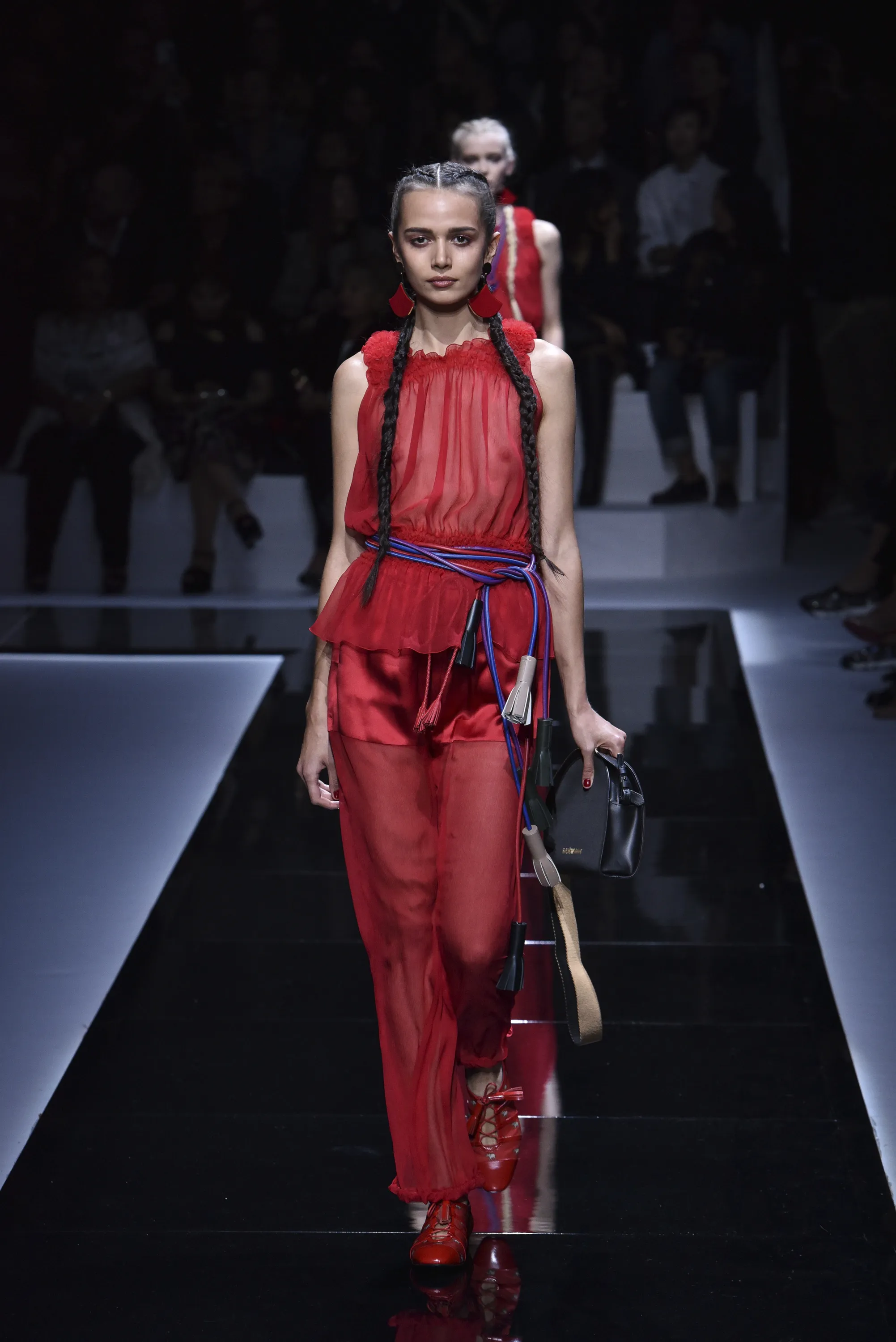 A model wears a creation for Giorgio Armani's Spring-Summer 2017 ready-to-wear fashion collection presented Monday, October 3, 2016 in Paris. (Photo by Zacharie Scheurer/AP Photo)