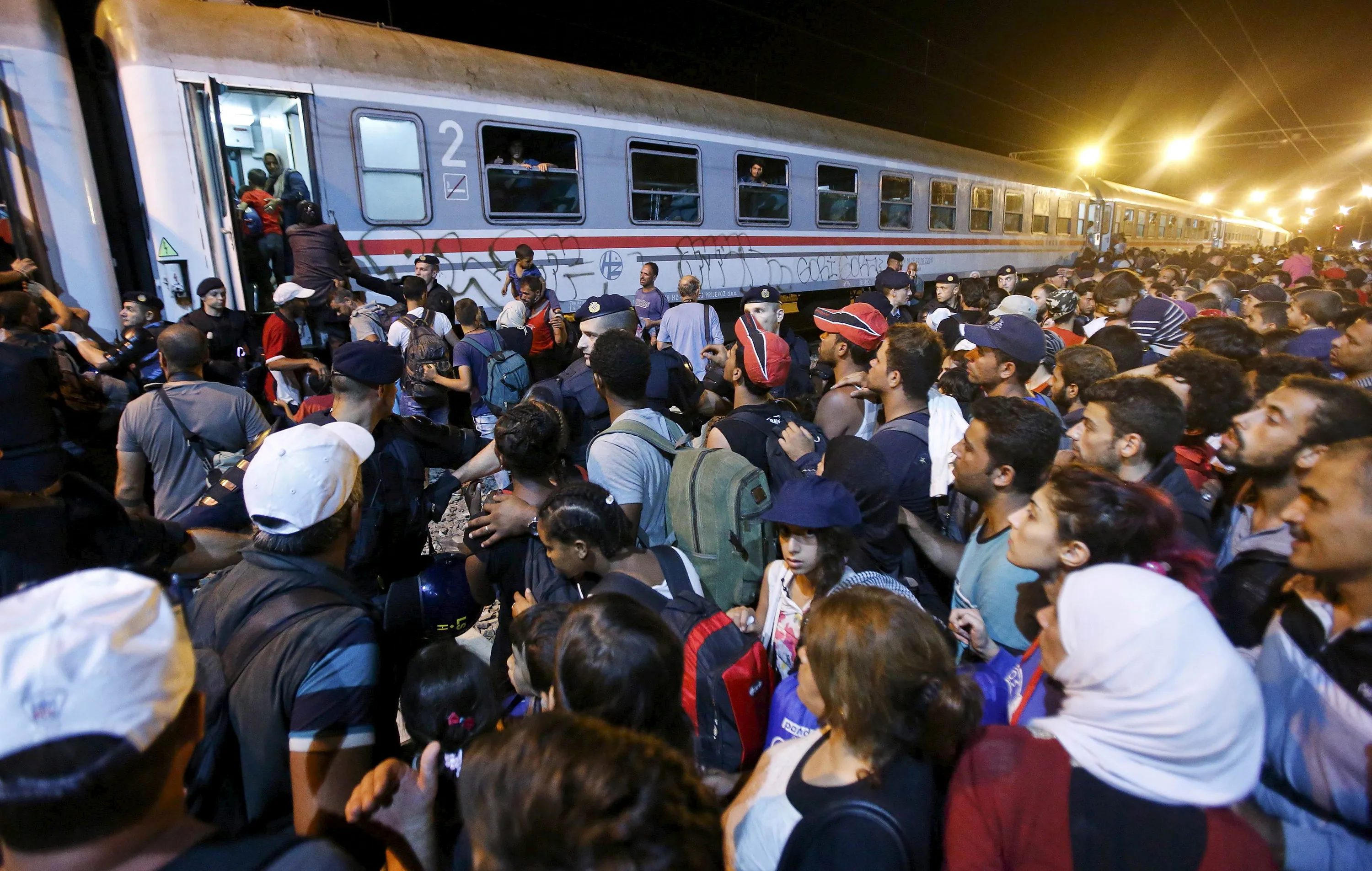 Migrants try to enter a train at a train station in Tovarnik, Croatia, September 18, 2015. (Photo by Antonio Bronic/Reuters)