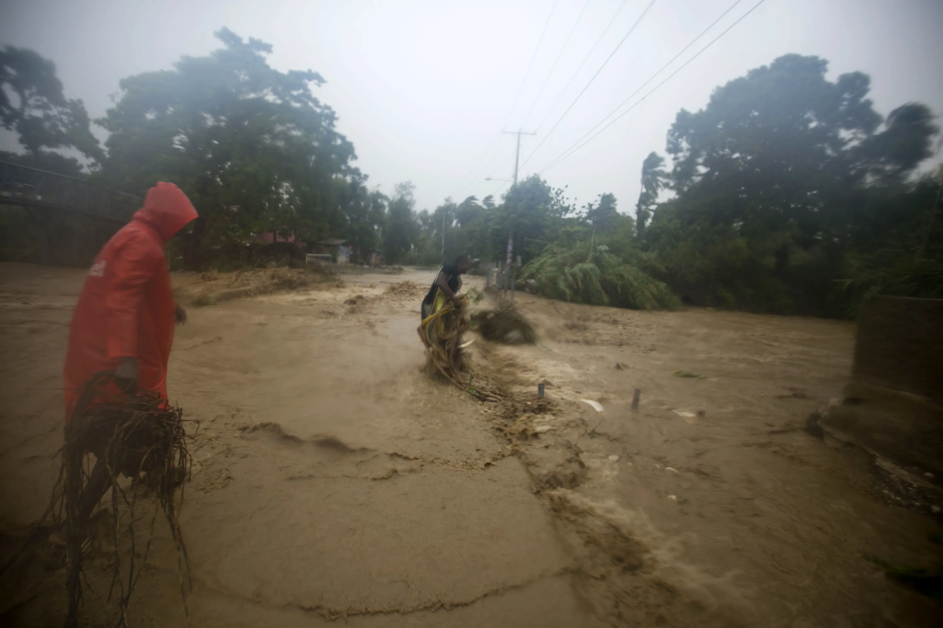 People work to remove debris from a street allowing vehicles to pass, in Leogane, Haiti, Tuesday, October 4, 2016. (Photo by Dieu Nalio Chery/AP Photo)