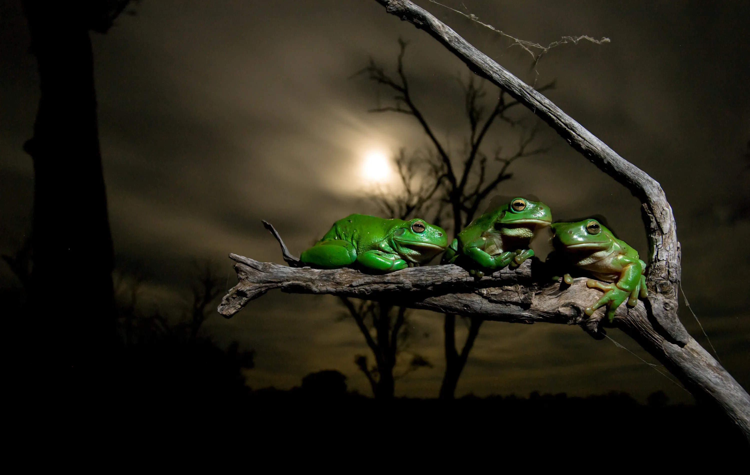“Measuring Up”. “After by a flood of rejuvenating rains, thousands of green tree frogs emerged upon the moonlit landscape of Australia’s Macquarie marshes to breed. These frogs were photographed after a biologist had collected and measured them, looking to understand more about the intricate relationships between amphibians and the water flows within the marshes. Because of the important role frogs play in ecosystem health, the study hoped to gain knowledge that could then be applied to help improve environmental water allocation management in the Murray Darling river basin”. (Photo by Dave Herasimtschuk/Wildscreen 2016)