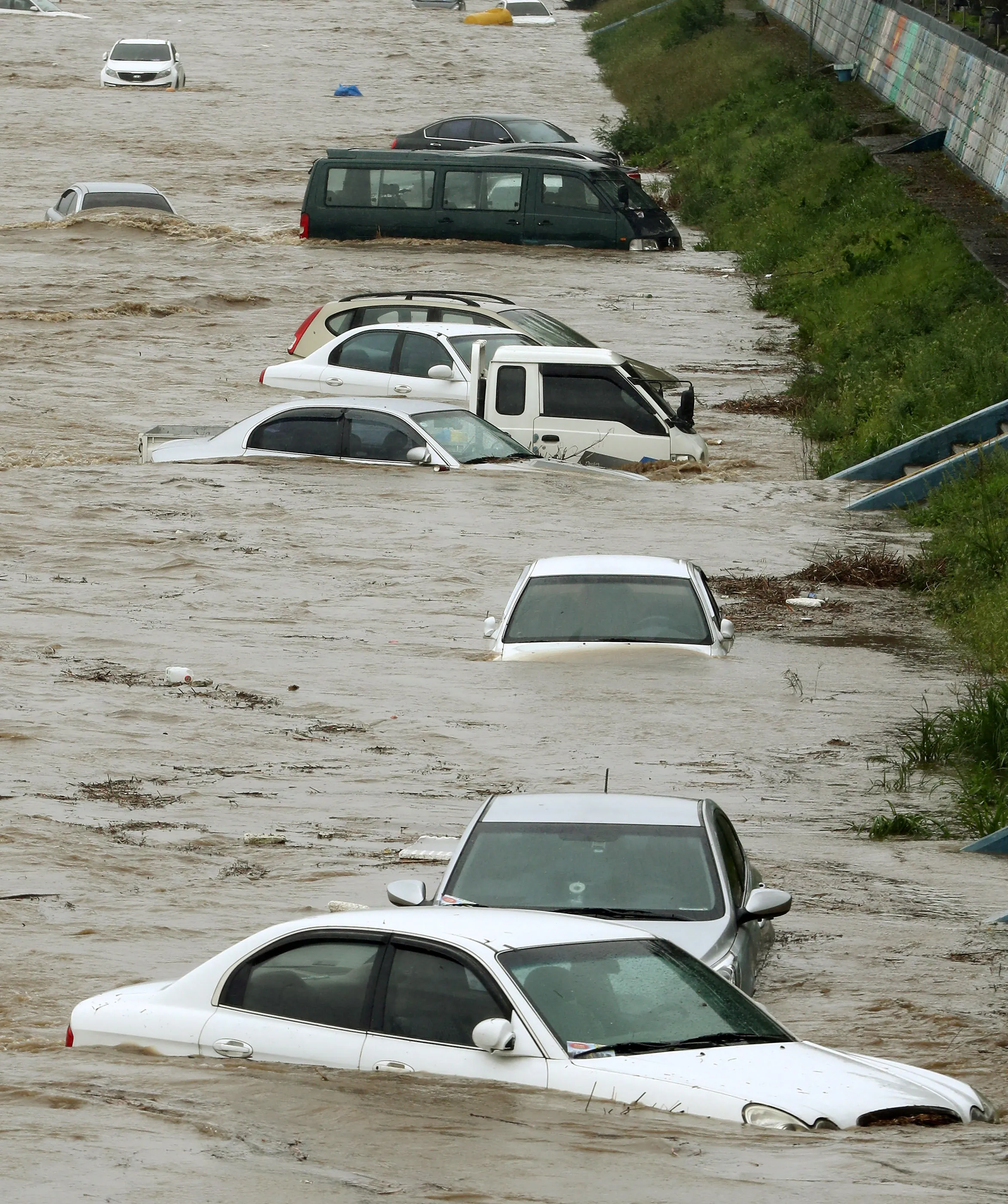 Cars are submerged in flood waters caused by Typhoon Chaba in Gyeongju, South Korea, October 5, 2016. (Photo by Kim Jun-beom/Reuters/Yonhap)