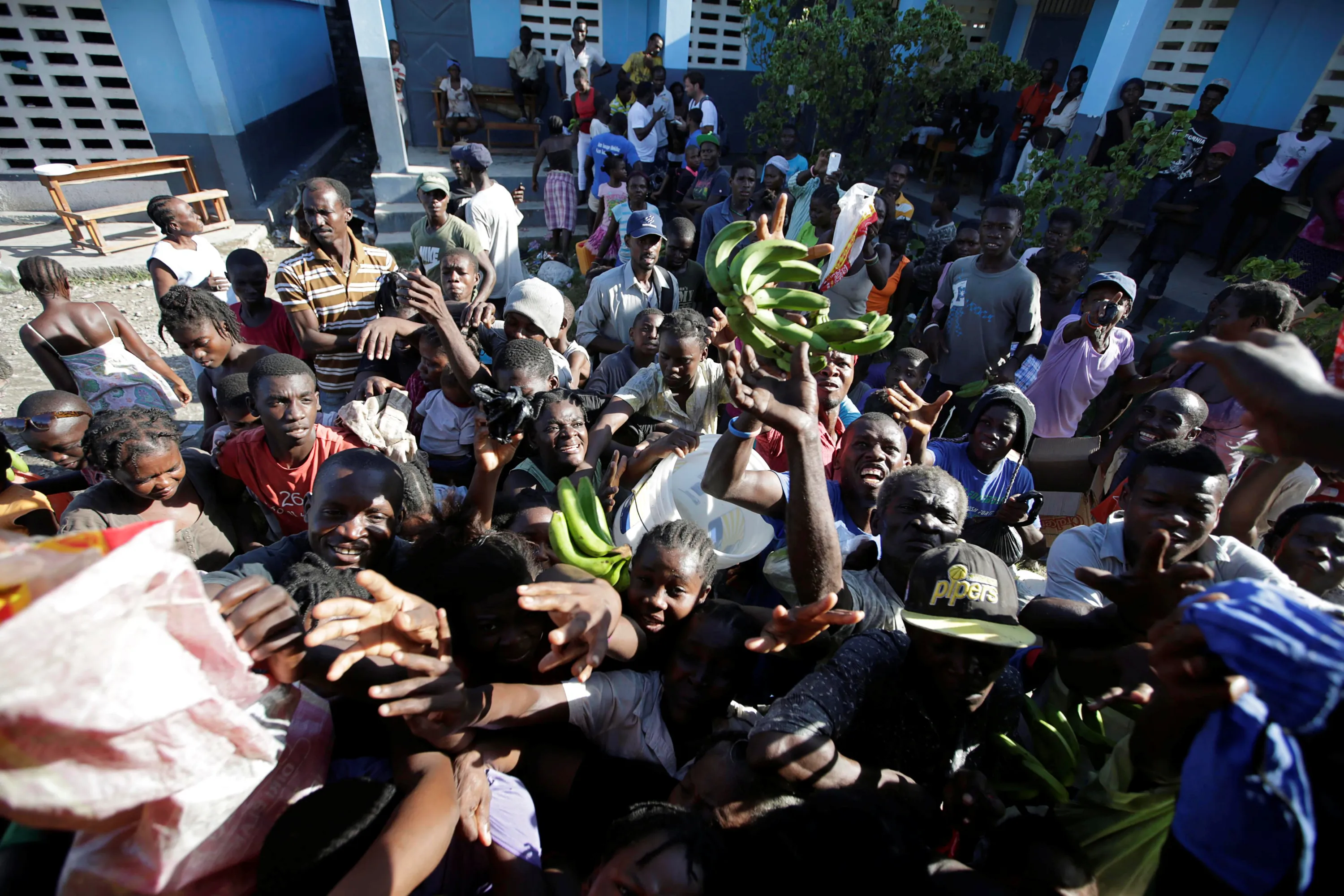 Residents at a shelter in the school Liliane Mars Dumarsais Estime fight for food during a delivery after Hurricane Matthew in Les Cayes, Haiti, October 7, 2016. (Photo by Andres Martinez Casares/Reuters)