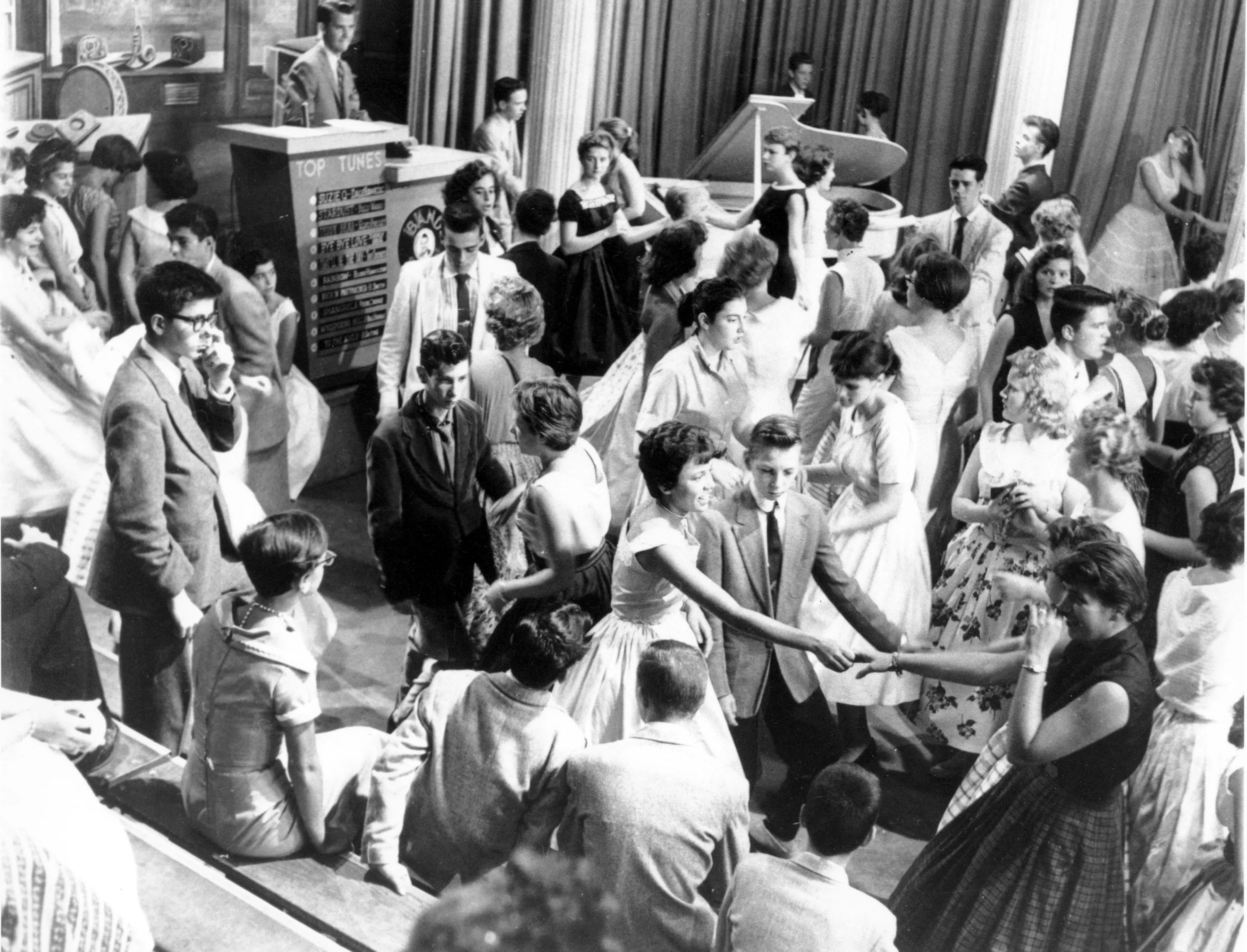 In a June 30, 1958, file photo, Dick Clark, at podium at upper left, is surrounded by teen-age fans on his nationally televised dance show “American Bandstand” in Philadelphia, Pa. TV was key to the world baby boomers were born into: a newly modernized world whose every problem (with the possible exception of the Cold War) seemed to promise an available solution. Polio would be cured! Man would go into space! Even African-Americans, oppressed for so long, had new reason for hope. TV chronicled this bracing wave of wonder and potential, and built upon it as an essential part of what distinguished boomers: They were pampered and privileged and ushered toward a sure-to-be-glorious future. (Photo by AP Photo)