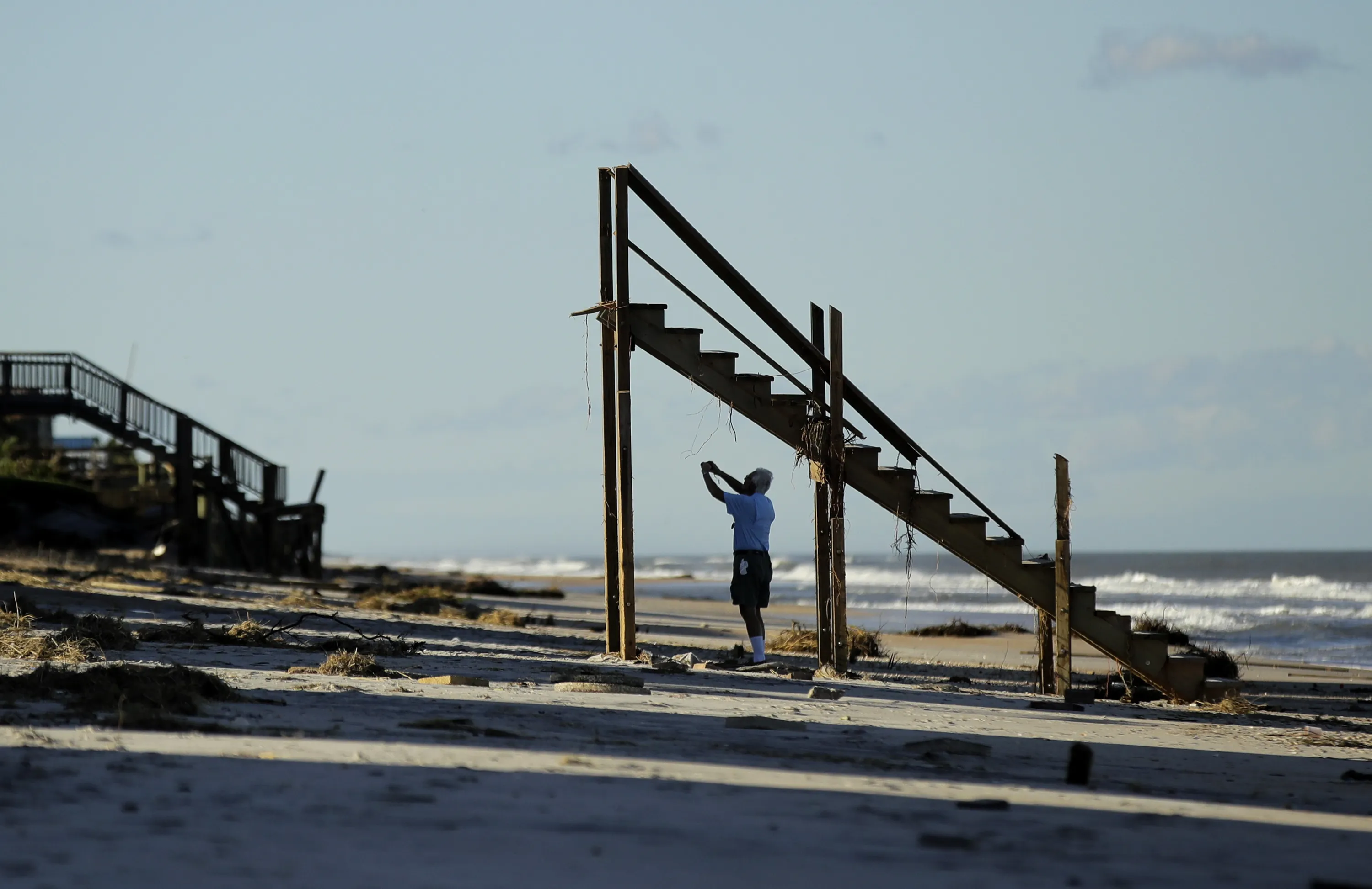 Ivan Juric looks takes photos of his damaged beach home at Ponte Vedra Beach, Fla., Saturday, October 8, 2016, after Hurricane Matthew passed through Friday. (Photo by Charlie Riedel/AP Photo)