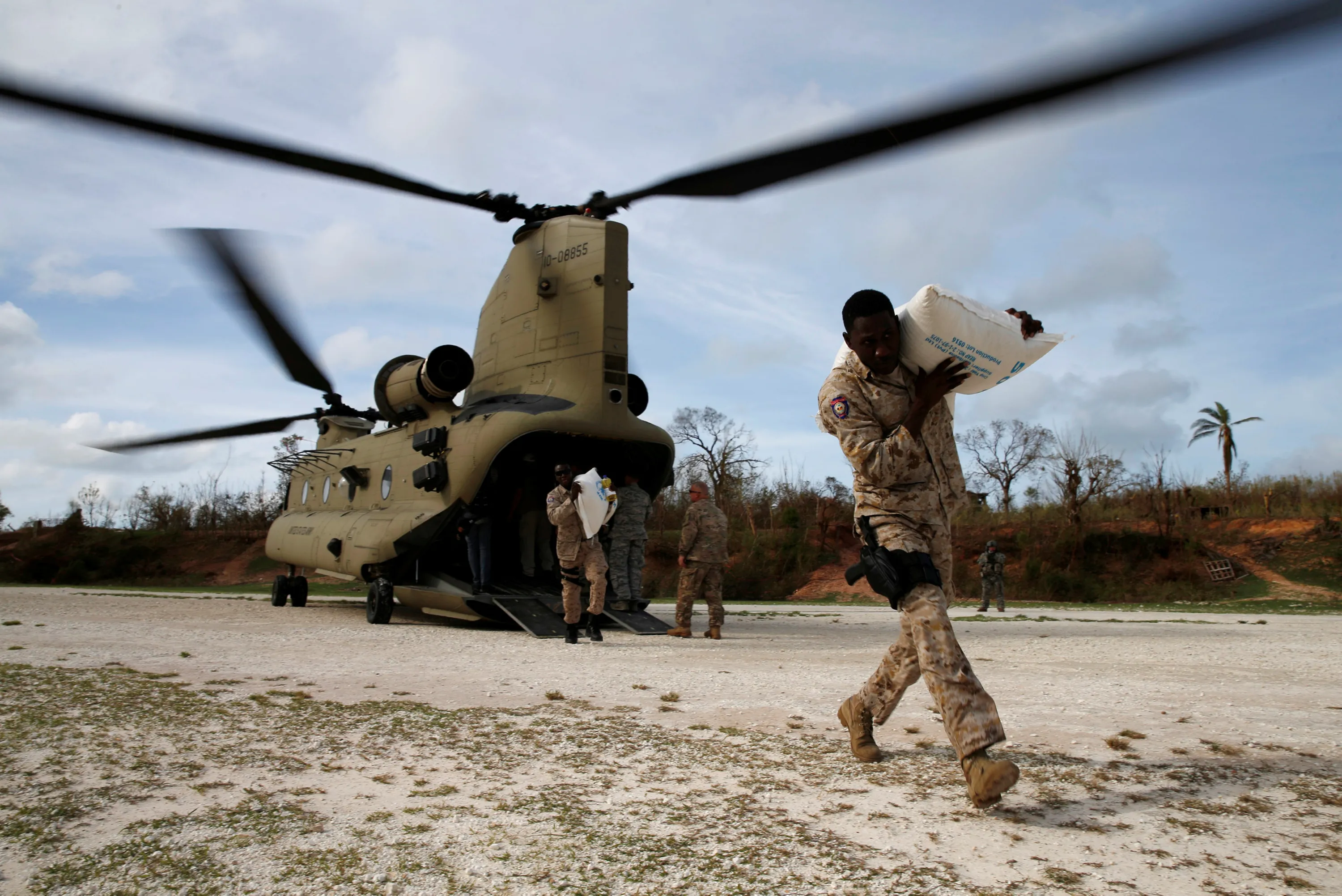 A soldier carries relief aid after Hurricane Matthew passes in Jeremie, Haiti, October 9, 2016. (Photo by Carlos Garcia Rawlins/Reuters)