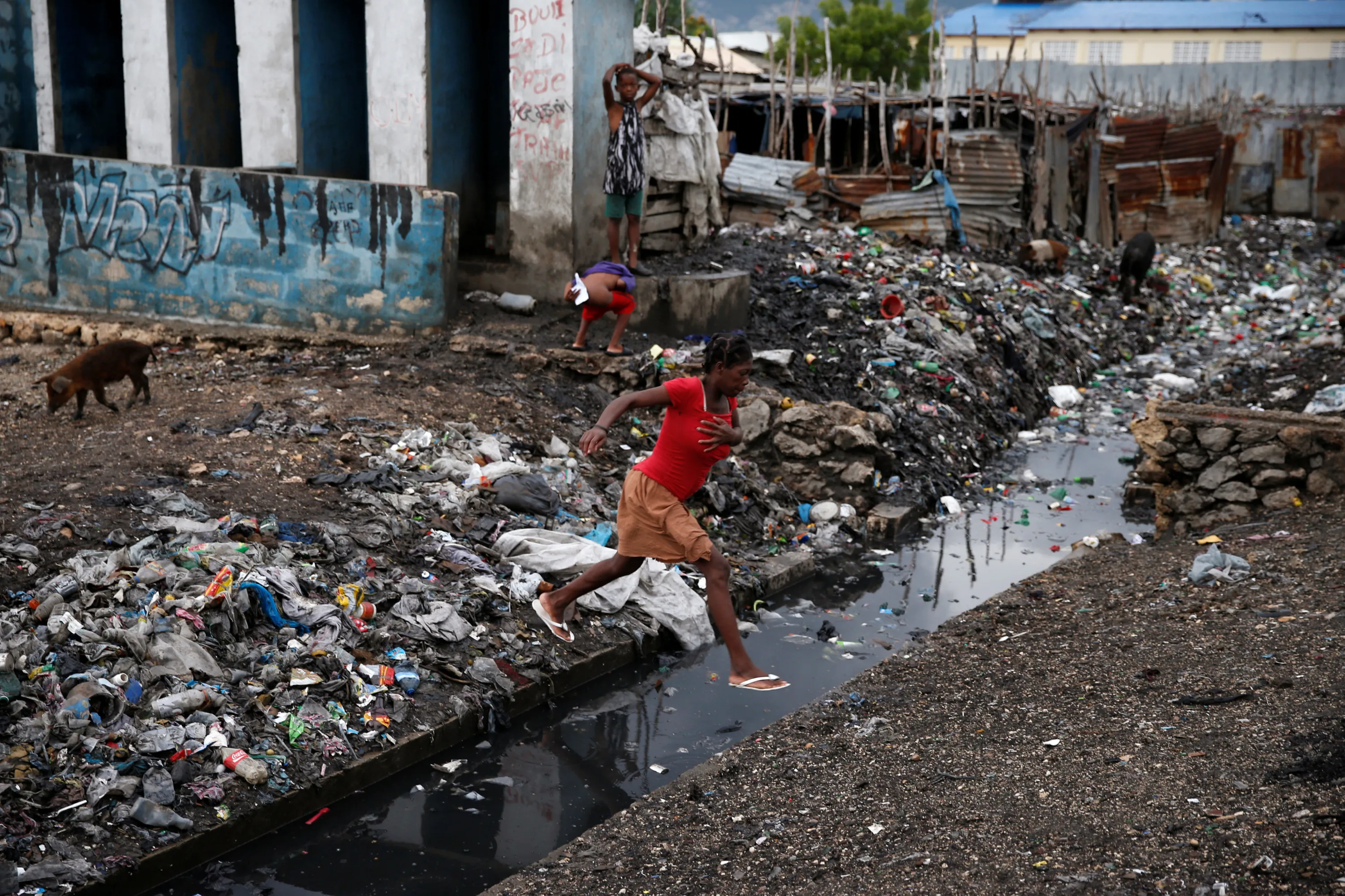 A woman crosses over a water canal after Hurricane Matthew passes Cite-Soleil in Port-au-Prince, Haiti, October 5, 2016. (Photo by Carlos Garcia Rawlins/Reuters)