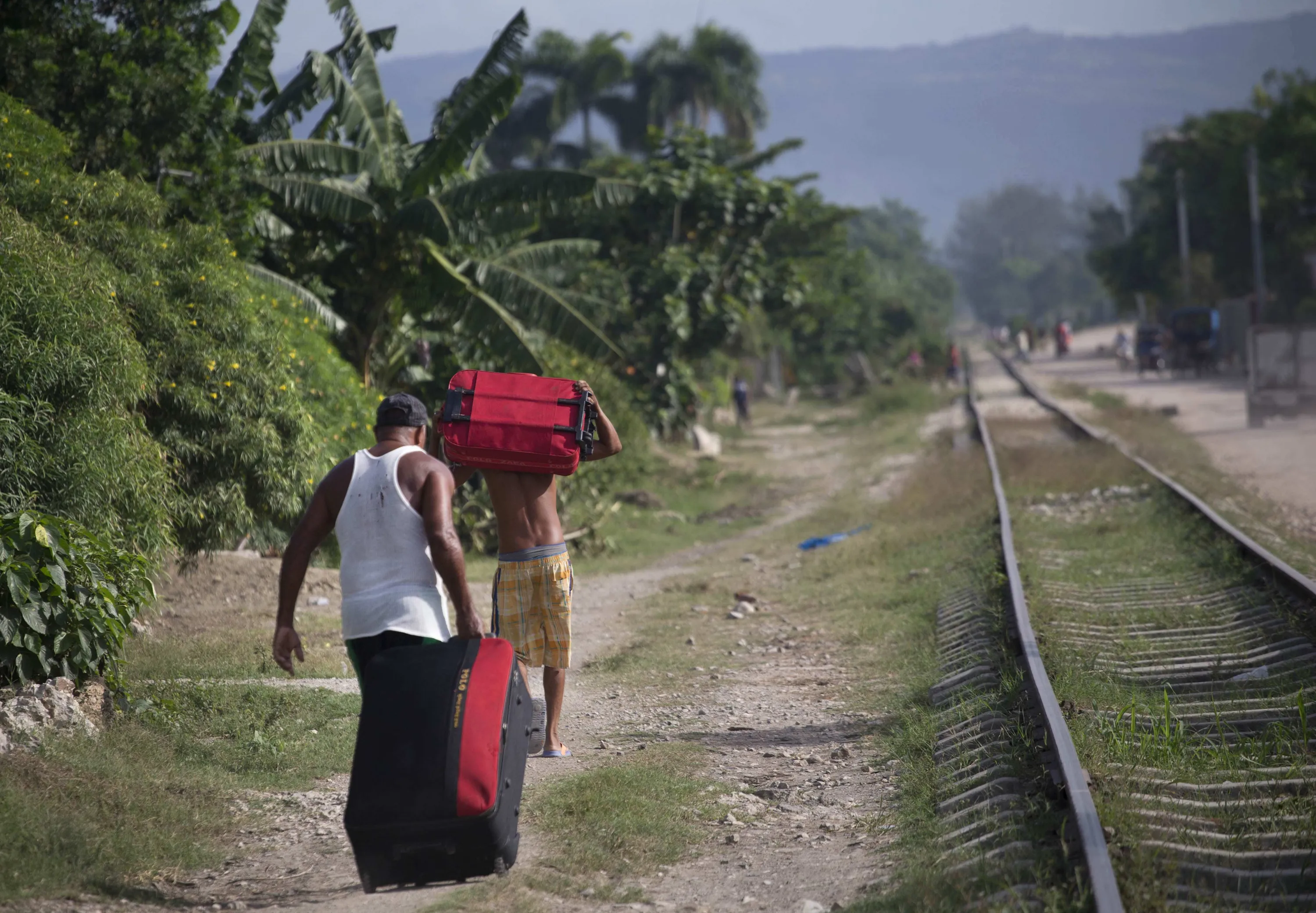 People carry suitcases as they move to a safer area before the arrival of Hurricane Matthew, in the village Paraguay, Guantanamo, Cuba, Monday, October 3, 2016. (Photo by Ramon Espinosa/AP Photo)