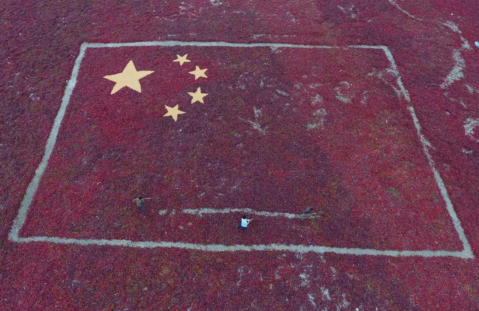 Chili were placed in the form of the Chinese national flag ahead of the Chinese National Day in Heshuo county, Xinjiang province, China, September 29, 2016. (Photo by Zhou Peng/Reuters)