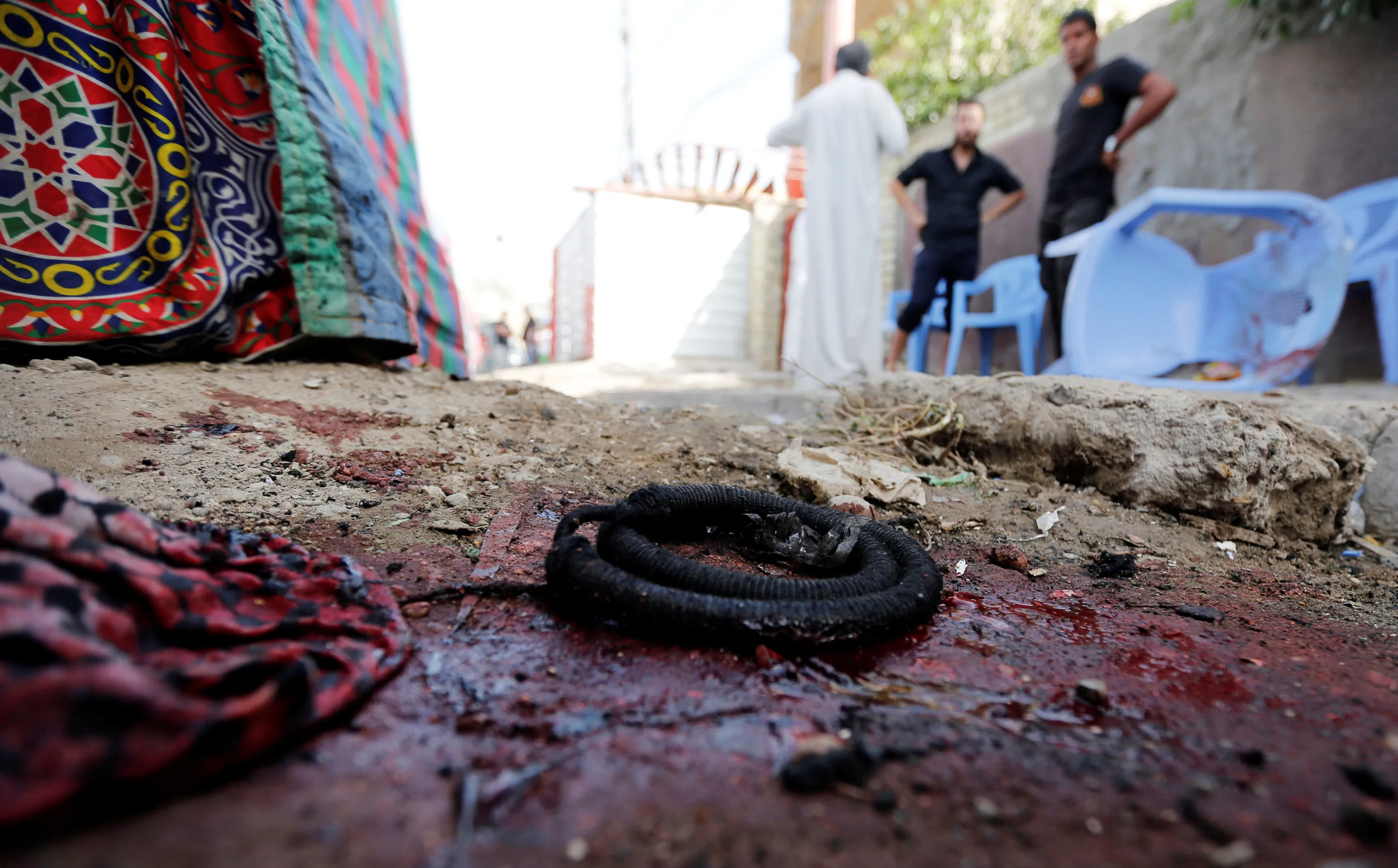 Arabic traditional headdress fill with blood is seen at the site of a suicide bomb attack in the city's northern al-Shaab district in Baghdad, Iraq October 15, 2016. (Photo by Ahmed Saad/Reuters)