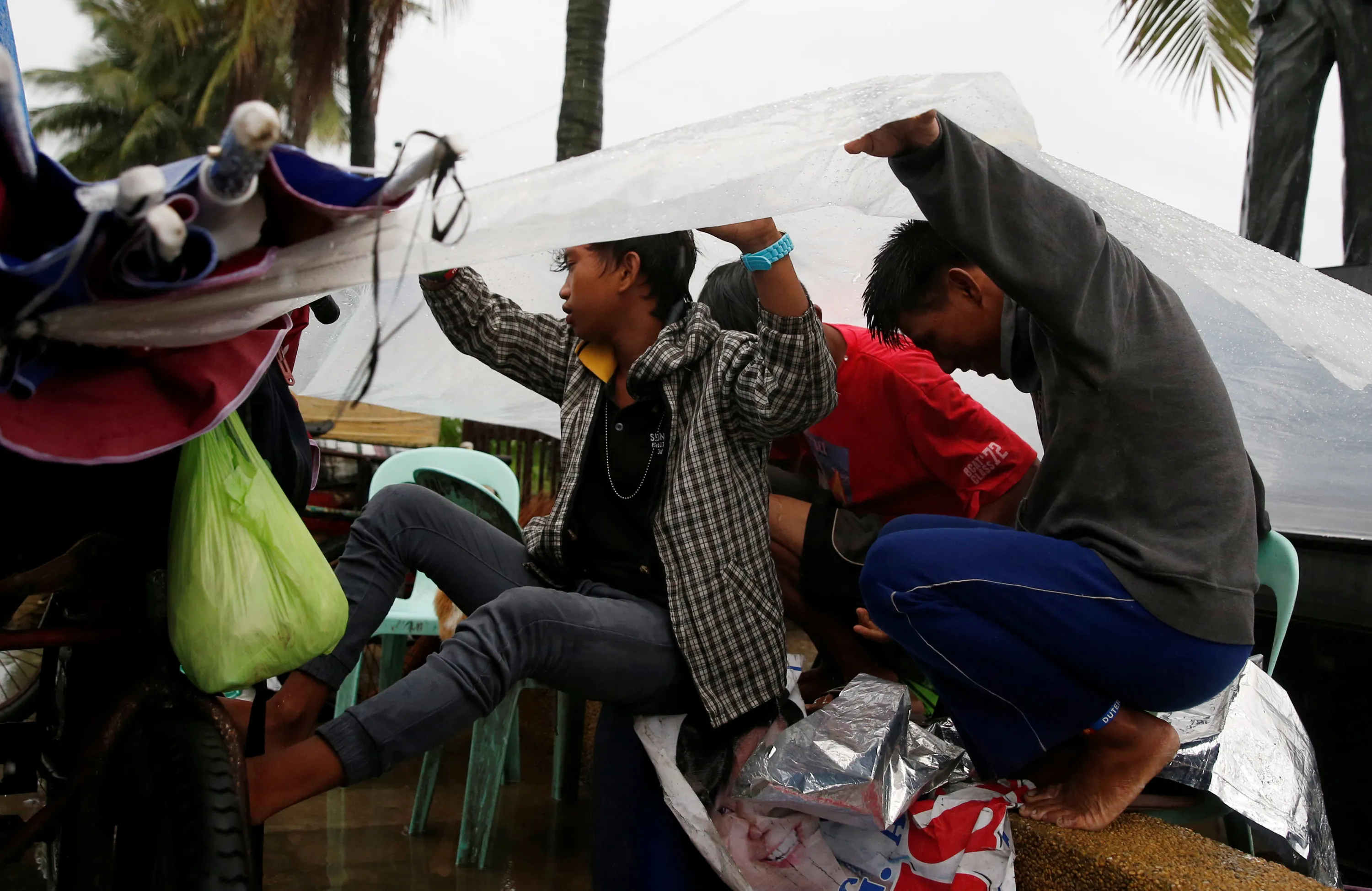 Vendors take shelter under a plastic sheet in Manila after Typhoon Karen slammed central and northern Philippines, October 16, 2016. (Photo by Erik De Castro/Reuters)