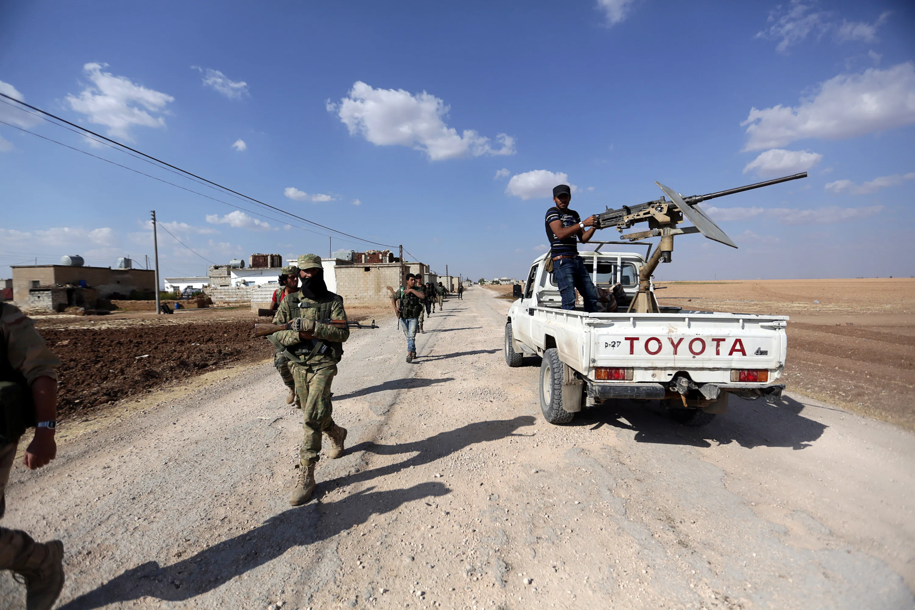 Rebel fighters walk as they advance towards Azaz city, northern Aleppo countryside, Syria October 11, 2016. (Photo by Khalil Ashawi/Reuters)