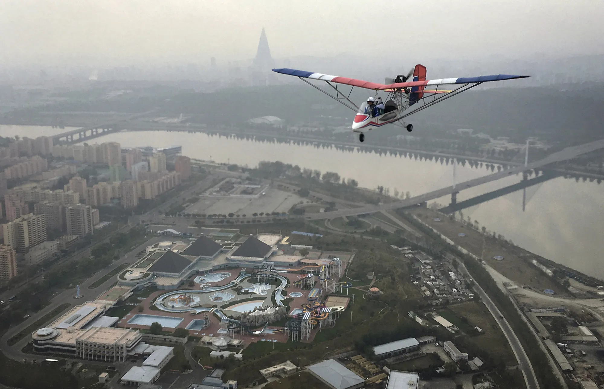 An ultralight aircraft flies over the city of Pyongyang on Sunday, October 16, 2016, in North Korea. Until a few months ago, if you wanted a bird's eye view of North Korea's capital there was basically only one option: a 150-meter tall tower across the river from Kim Il Sung Square. Now, if you have the cash, you can climb into the backseat of an ultralight aircraft. With the support of North Korean leader Kim Jong Un, who has vowed to give North Koreans more modern and “cultured” ways to spend their leisure time, a Pyongyang flying club has started offering short flights over some of the capital's major sights. The flights are not cheap: A 25-minute ride from the airstrip on the outskirts of the city to Kim Il Sung Square and the Juche Tower, which had previously been the best place to get an urban panorama, goes for around $150. (Photo by Wong Maye-E/AP Photo)