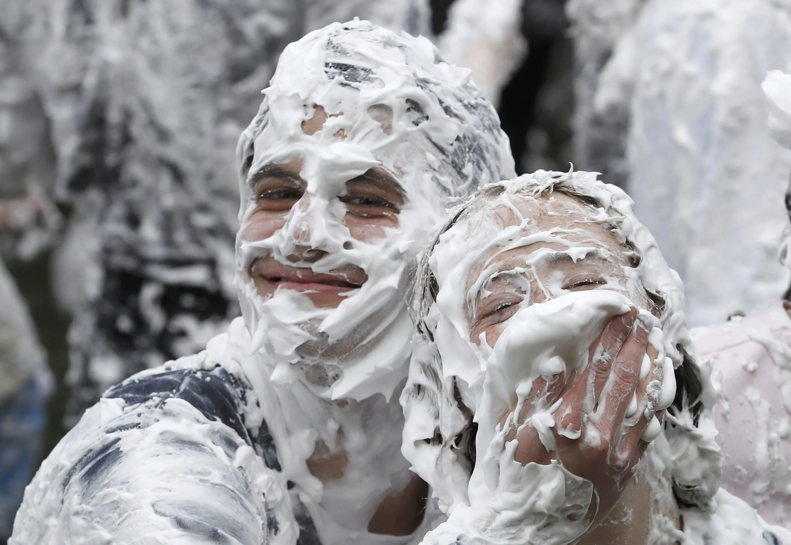 Students from St Andrews University are covered in foam as they take part in the traditional “Raisin Weekend” in the Lower College Lawn, at St Andrews in Scotland, Britain October 17, 2016. (Photo by Russell Cheyne/Reuters)