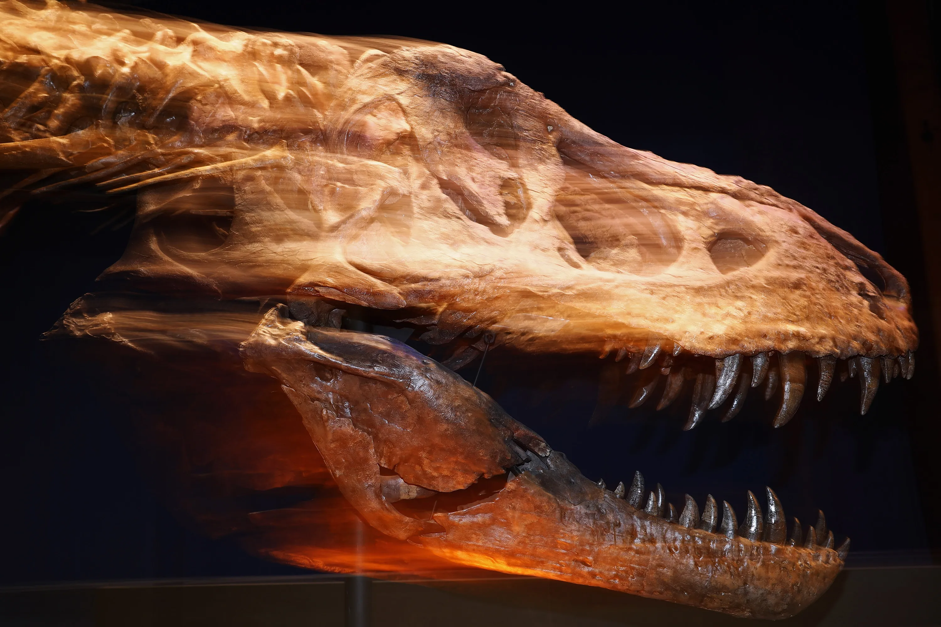 A general view the skull, jaw and teeth of Trix the female T-Rex exhibition at the Naturalis or Natural History Museum of Leiden on October 17, 2016 in Leiden, Netherlands. The skeleton of Tyrannosaurus rex was excavated in 2013 in Montana, USA, by Naturalis Biodiversity Center. The fossil is part of the Naturalis collection and is more than 80% of the bone volume present. All essential and highvolume bones are in place. This places Trix in the top 3 ranking of the most complete Tyrannosaurus rex skeletons in the world. In addition, all the bones are extremely well preserved. The quality of this fossil is unmatched by any other large T-Rex find in the world. (Photo by Dean Mouhtaropoulos/Getty Images)