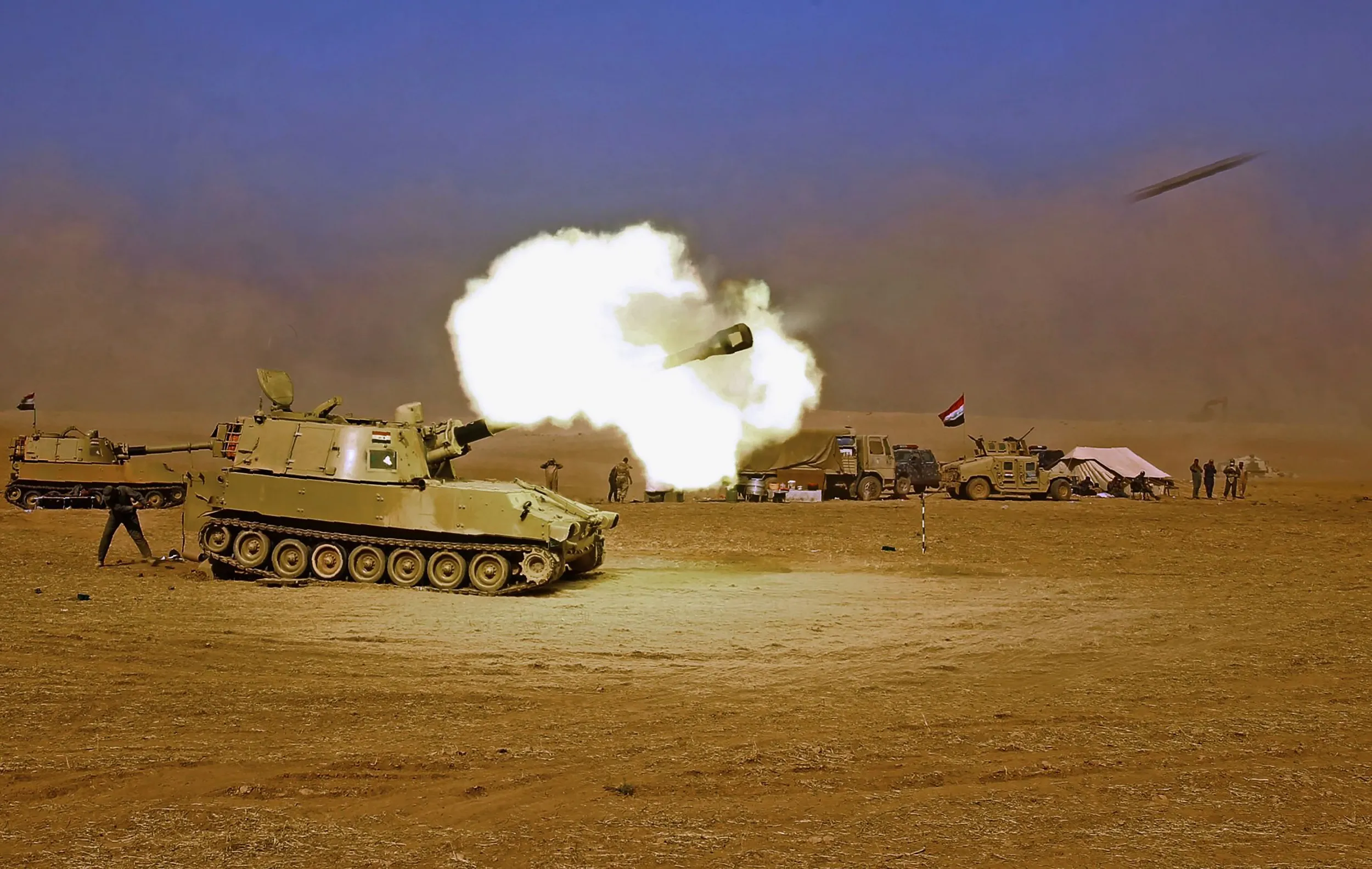 An Iraqi forces M109 self-propelled howitzer fires towards the village of Tall al-Tibah, some 30 kilometres south of Mosul, on Oct. 19, 2016, during an operation against Islamic State (IS) group jihadists to retake the main hub city. (Photo by Ahmad Al-Rubaye/AFP Photo)