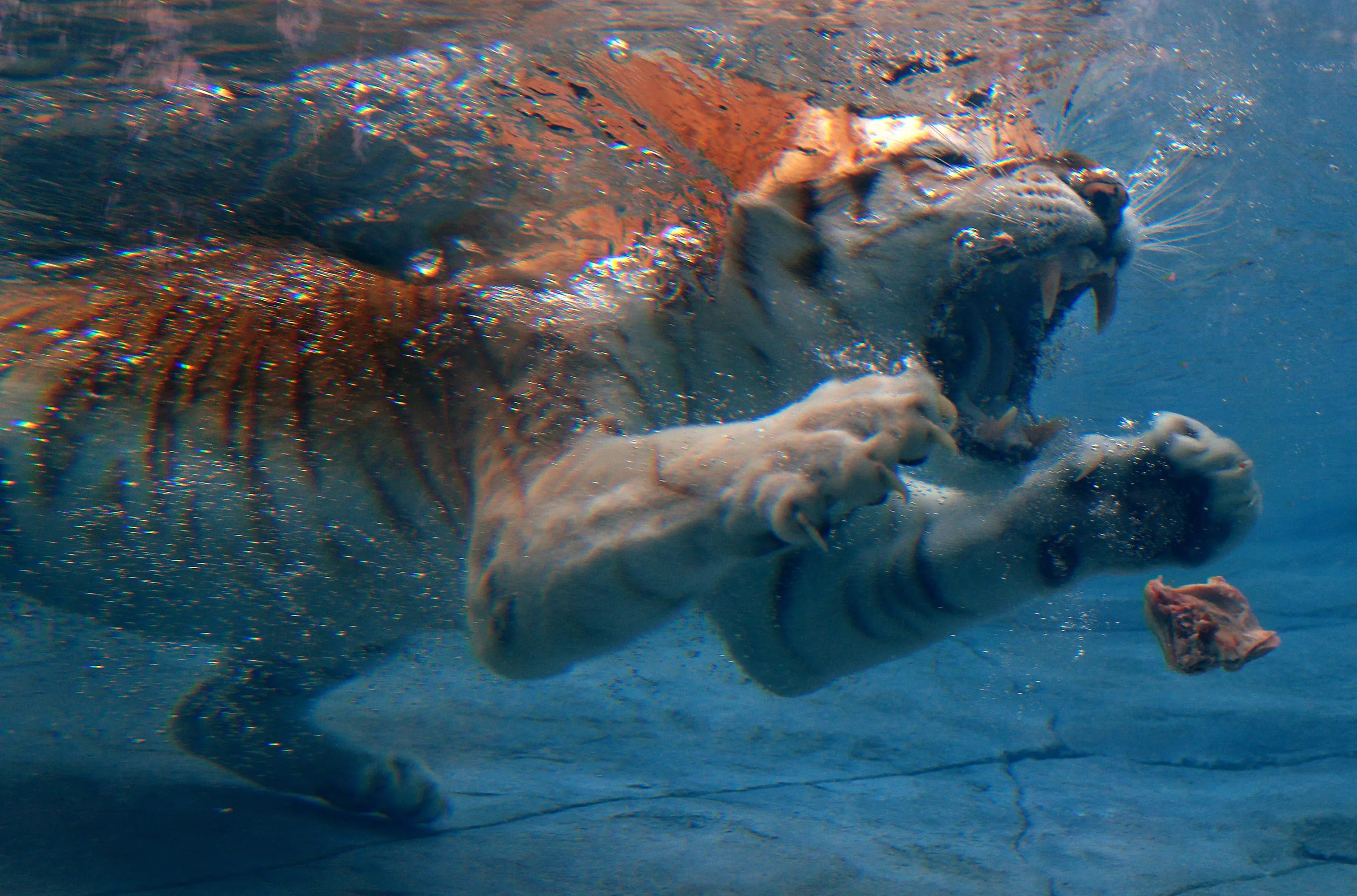 “Sita” the tiger dives for food in the new Tiger Island Pool at Dreamworld New “Tiger Island Pool” opens at Dreamworld, Gold Coast, Queensland, Australia on October 11, 2016. (Photo by Adam Head/Newspix/Rex Features/Shutterstock)