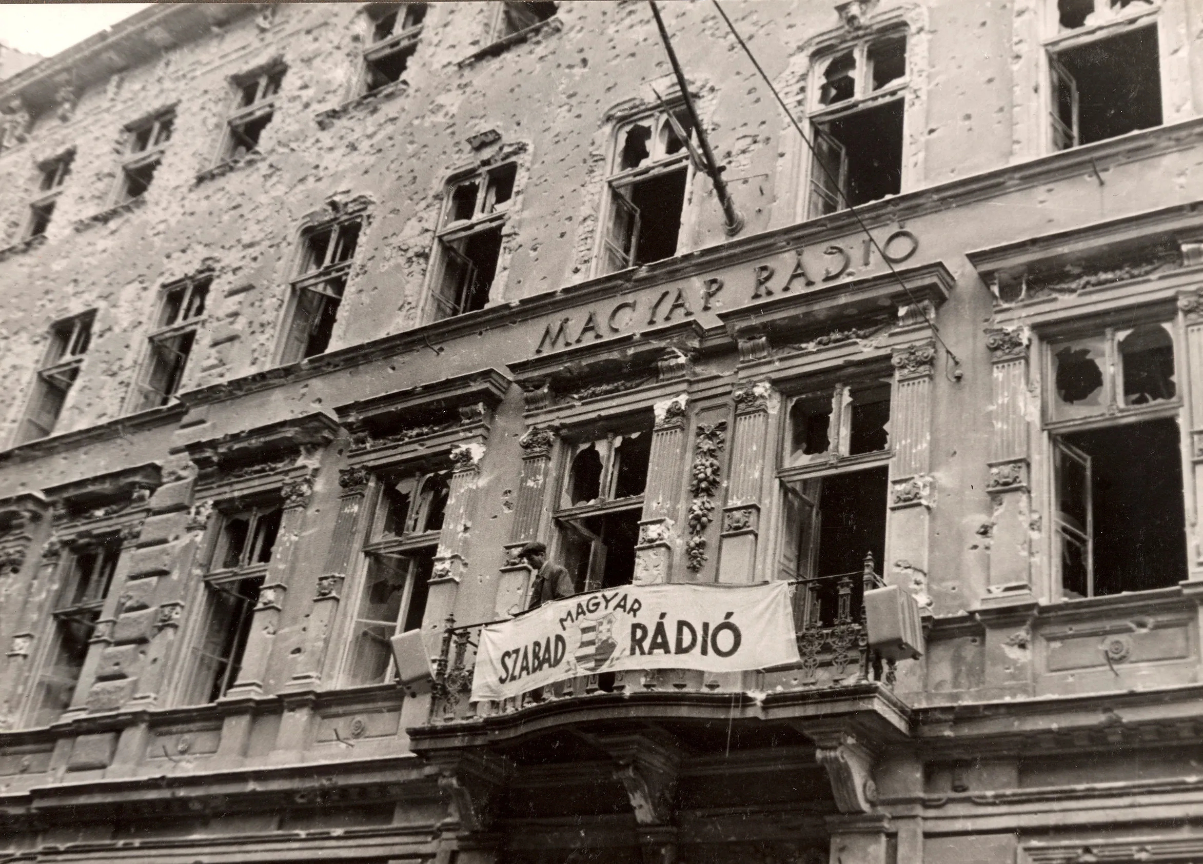 A general view shows the building of the national radio station covered in bullet holes in central Budapest at the time of the uprising against the Soviet-supported Hungarian communist regime in 1956. The picture was taken in the period between October 23 and November 4, 1956. (Photo by Laszlo Almasi/Reuters)