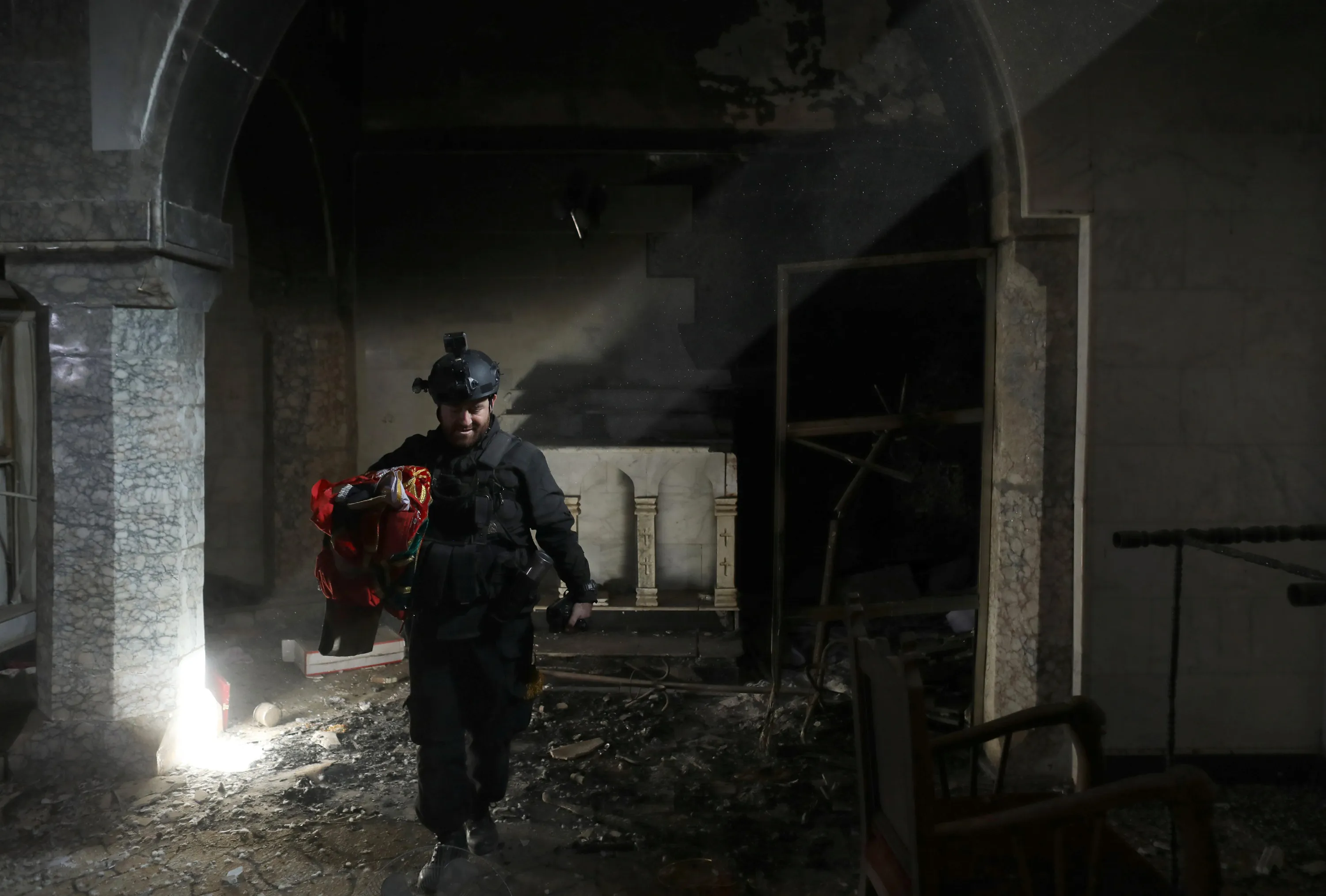 A Christian Iraqi special forces soldier walks in a church in Bartella, east of Mosul, Iraq October 22, 2016. (Photo by Goran Tomasevic/Reuters)