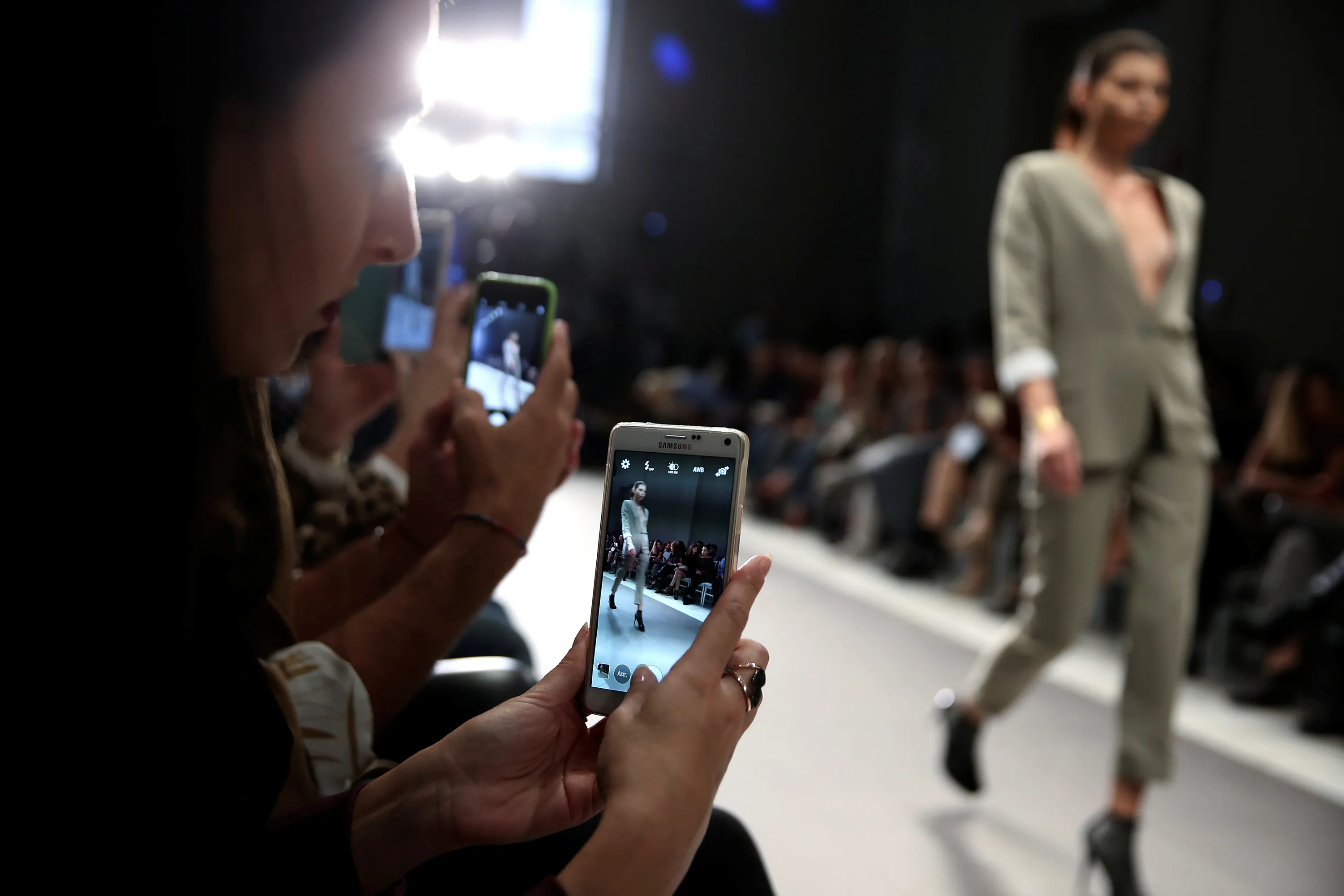 Audience take photos of a model presenting a creation by Greek designer Dimitrios Ordoulidis during the 10th Athens Exclusive Fashion Week in Athens, Greece, October 22, 2016. (Photo by Alkis Konstantinidis/Reuters)