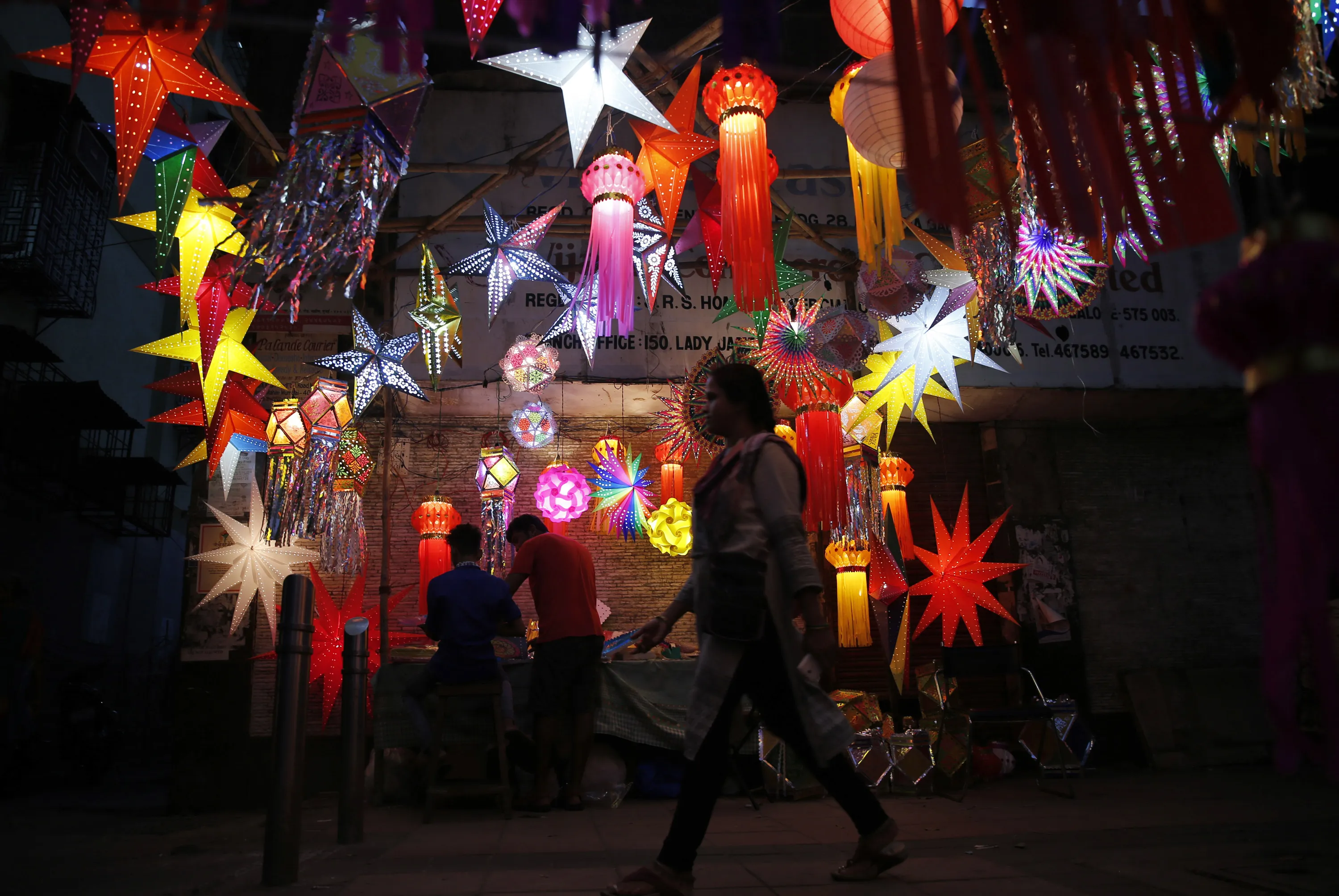 Lanterns are hung on display ahead of Diwali, the Hindu festival of lights, in Mumbai, India, Sunday, October 23, 2016. Diwali is one of Hinduism's most important festivals, dedicated to the worship of the Hindu goddess of wealth Lakshmi. (Photo by Rafiq Maqbool/AP Photo)