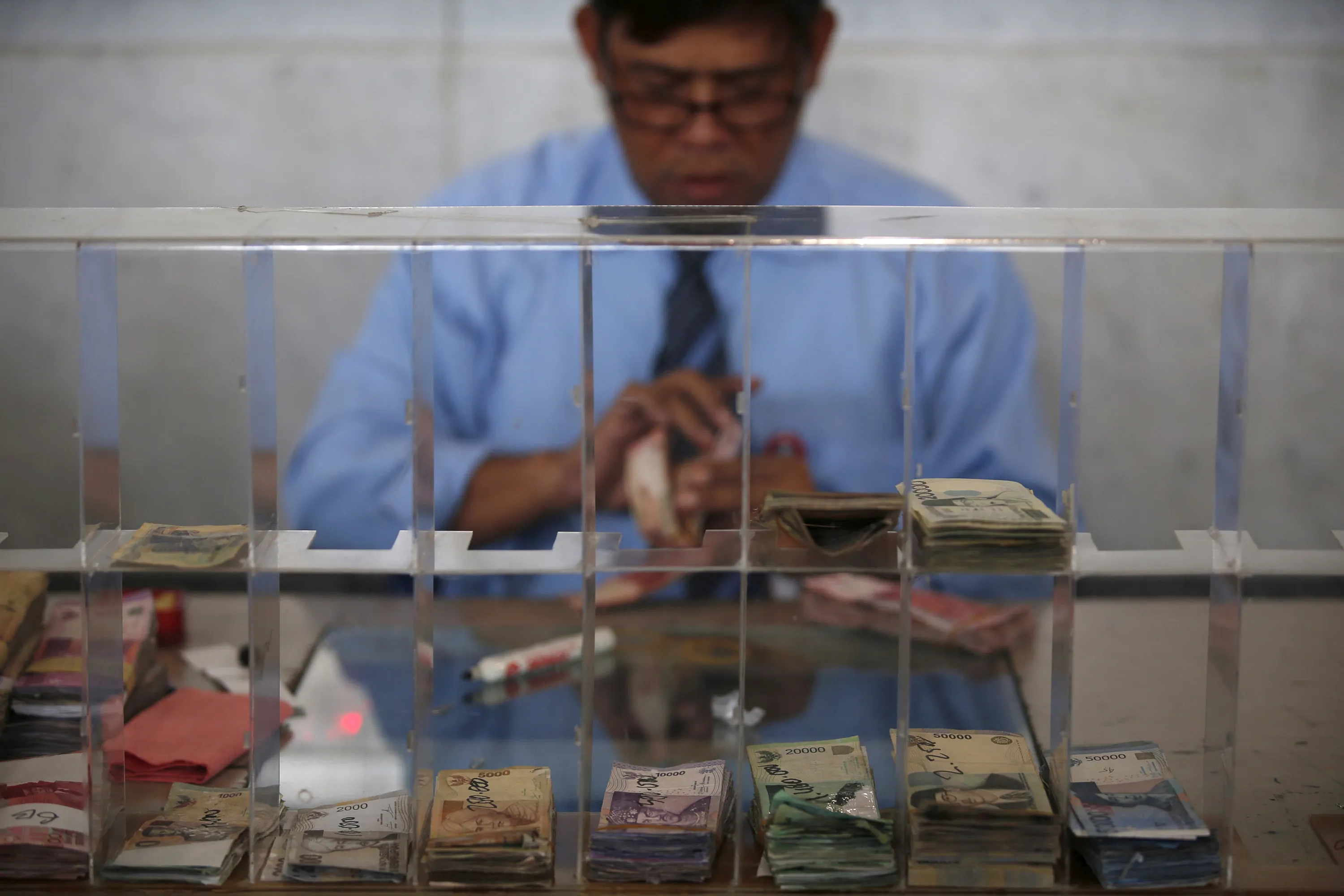 A Bank Indonesia employee counts damaged or worn rupiah bank notes exchanged for new ones at the bank's headquarters in Jakarta, Indonesia, December 16, 2015. (Photo by Darren Whiteside/Reuters)