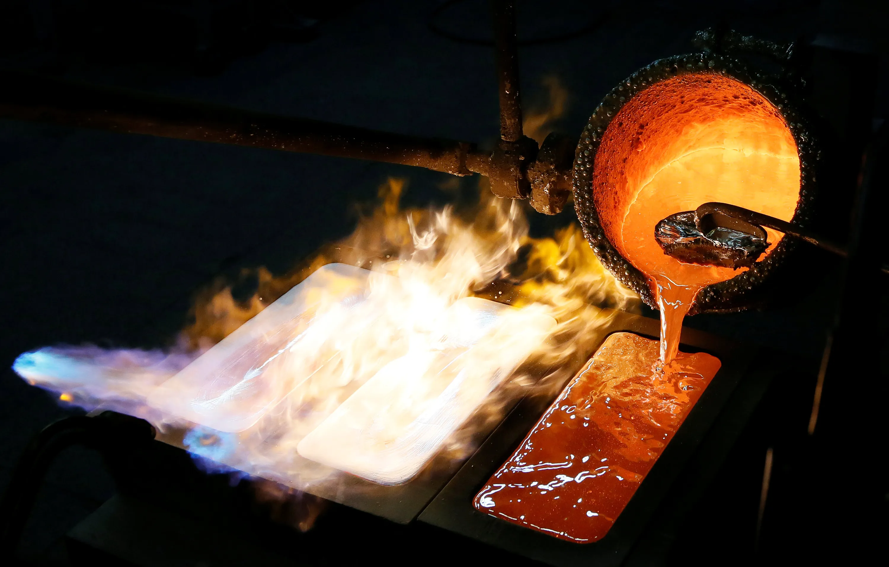 Ingots of 99.99 percent pure silver are cast at the Krastsvetmet non-ferrous metals plant, one of the world's largest producers in the precious metals industry, in the Siberian city of Krasnoyarsk, Russia October 24, 2016. Picture taken October 24, 2016. (Photo by Ilya Naymushin/Reuters)