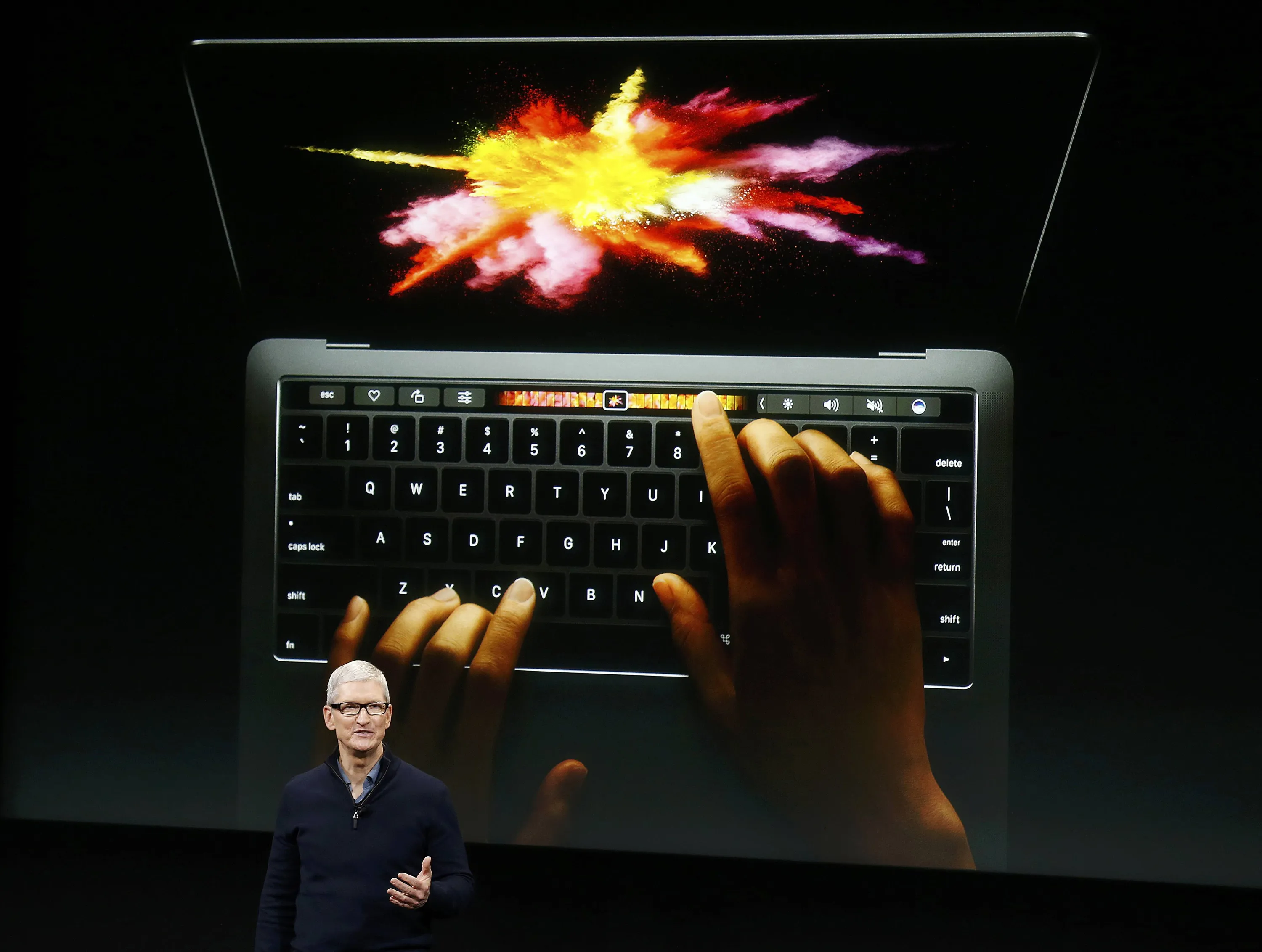 Apple CEO Tim Cook speaks under a graphic of the new MacBook Pro during an Apple media event in Cupertino, California, U.S. October 27, 2016. (Photo by Beck Diefenbach/Reuters)
