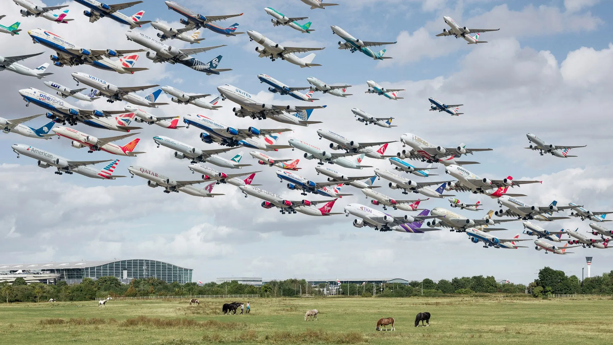 He said some of the amazing composite pictures – including this one of Heathrow – took weeks or even months to create. (Photo by Mike Kelley/SWINS)
