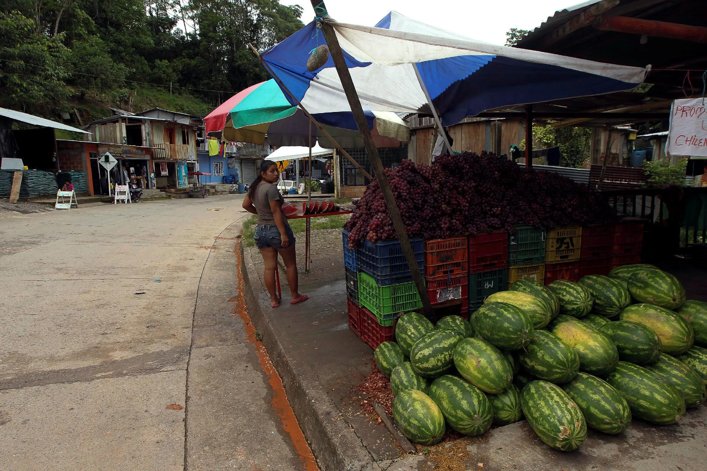 Fruits are pictured for sale in San Miguel at the International Border Bridge over San Miguel river in El Putumayo, Colombia October 9, 2016. (Photo by Guillermo Granja/Reuters)