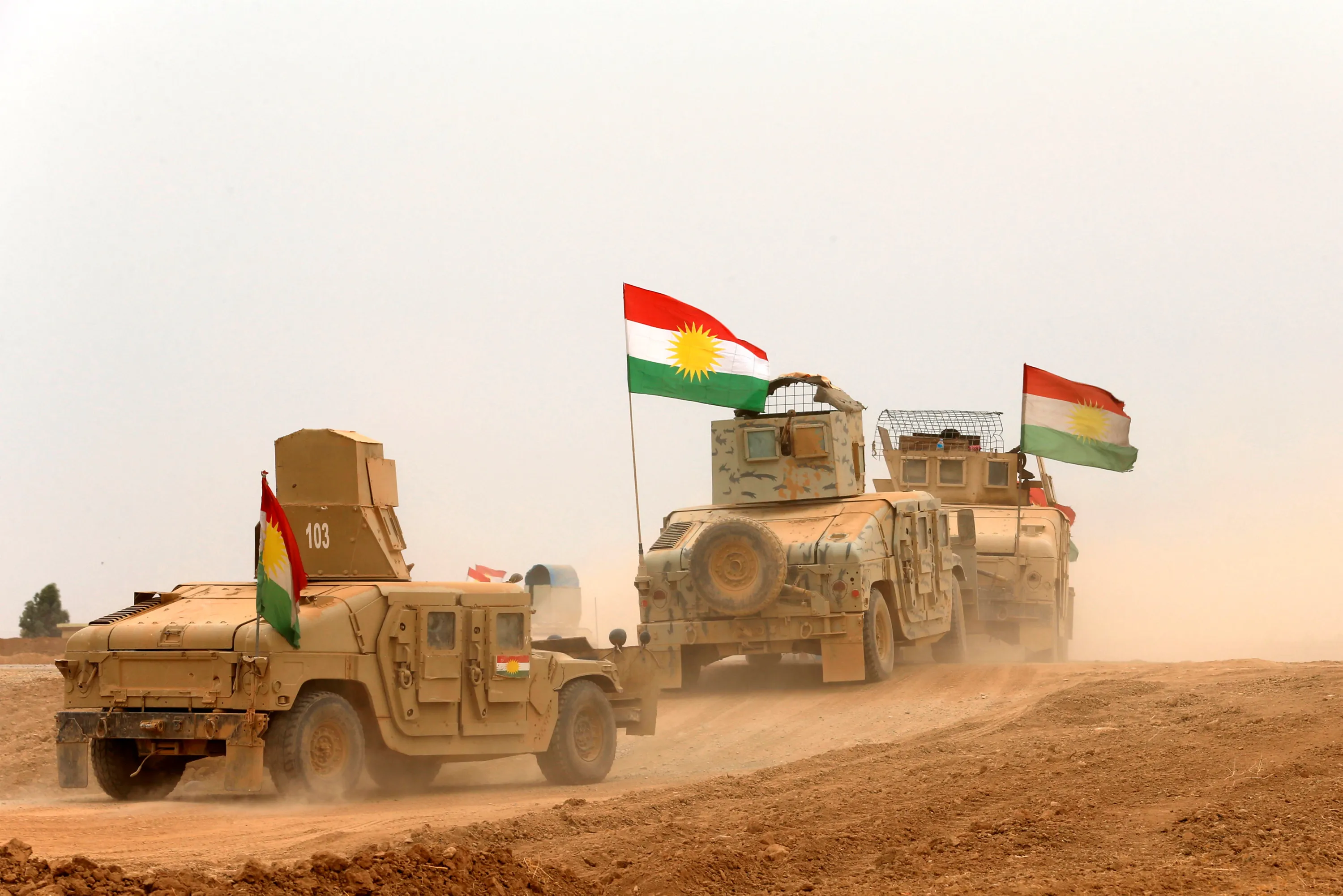 Kurdish Peshmerga military vehicles drive during a battle with Islamic State militants at Jarbuah village near Bashiqa near Mosul, Iraq, October 28, 2016. (Photo by Ahmed Jadallah/Reuters)