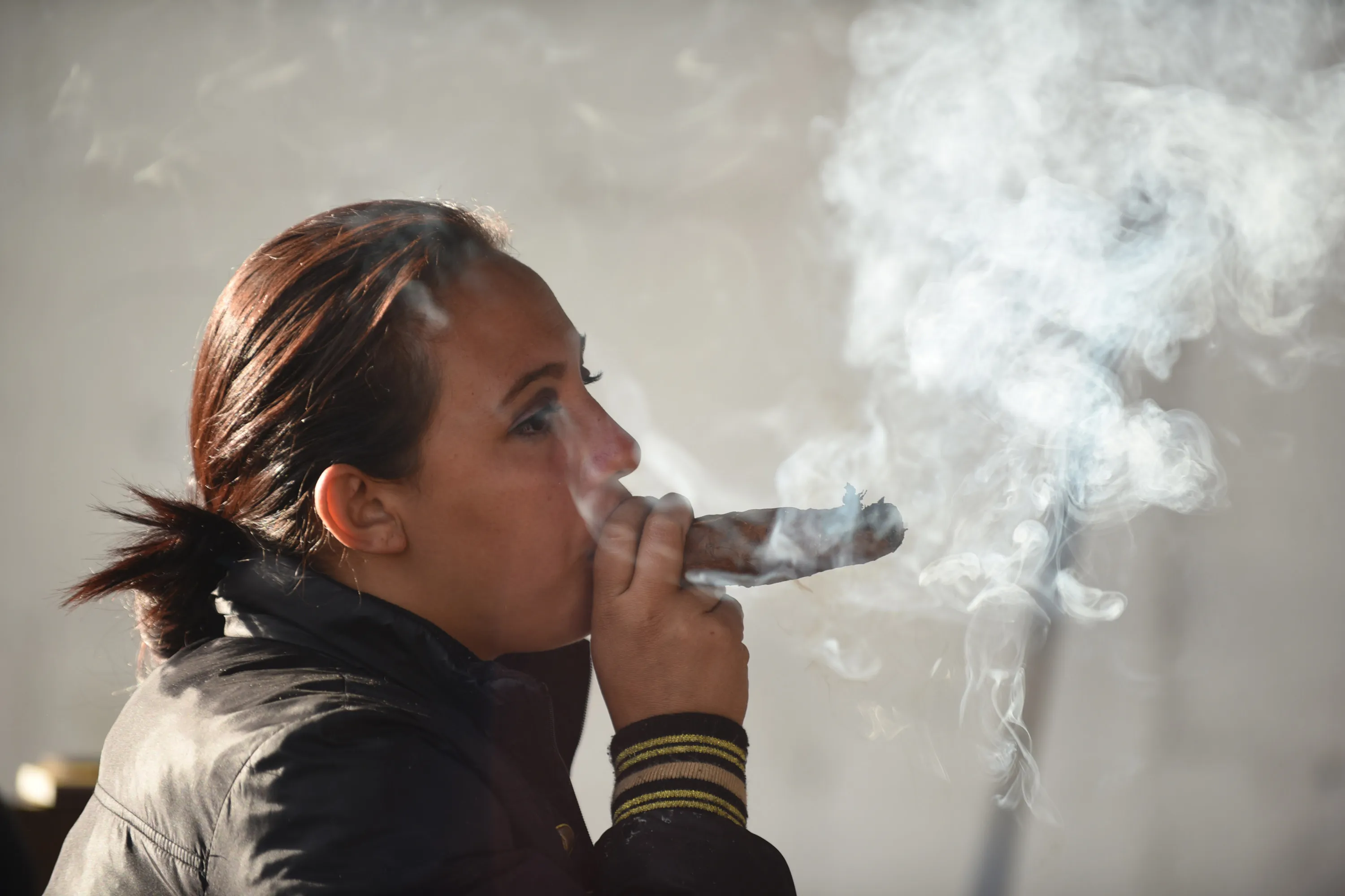 A woman smokes a cigar as she pays homage before an image of San Simon in the municipality of San Andres Iztapa in Chimaltenango, some 40 km west of Guatemala City, on October 28, 2016, during a pagan festival to honor the saint. Thousands of devotees bring cigarettes and spirits offerings to the saint – not recognized by the Catholic Church – who is believed to be the protector of the homeless, prostitutes, alcoholics and drug-traffickers. (Photo by Johan Ordonez/AFP Photo)