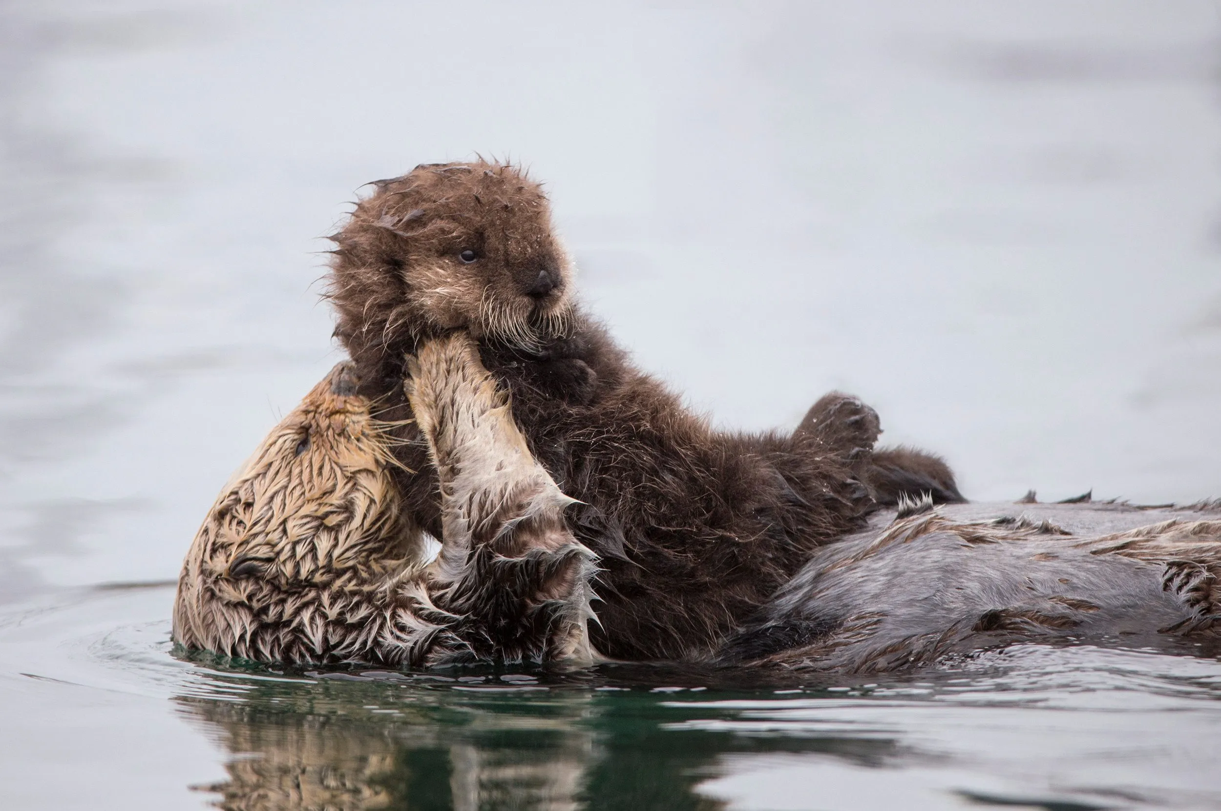 The sea otter mother with her three day old newborn pup ontop of her to keep it dry and warm while it sleeps. (Photo by Suzi Eszterhas /Minden Pictures/Solent News & Photo Agency)