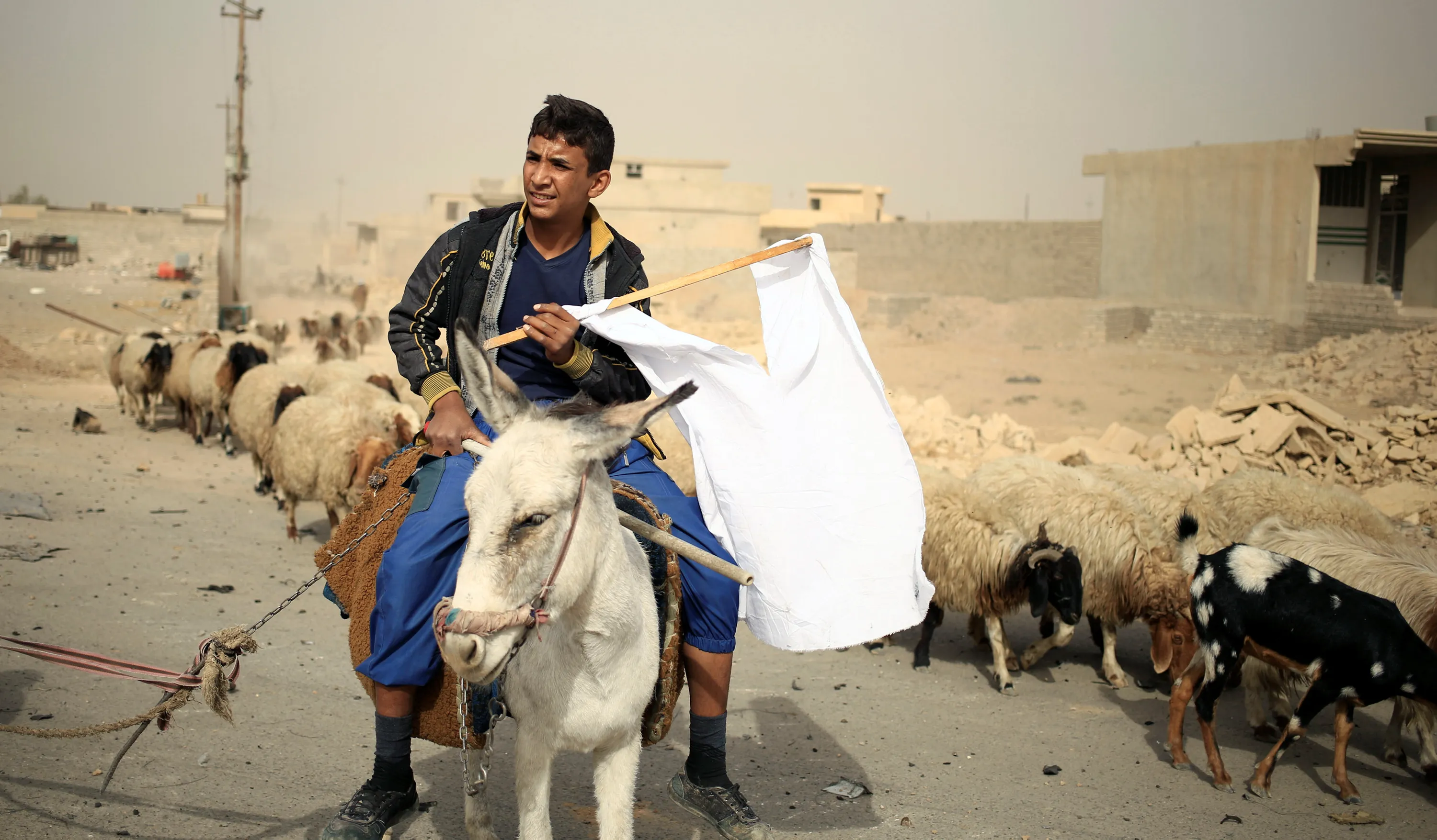 A man who just fled Bazwaia village carries a white flag as he arrives at a special forces checkpoint, east of Mosul, Iraq November 1, 2016. (Photo by Zohra Bensemra/Reuters)