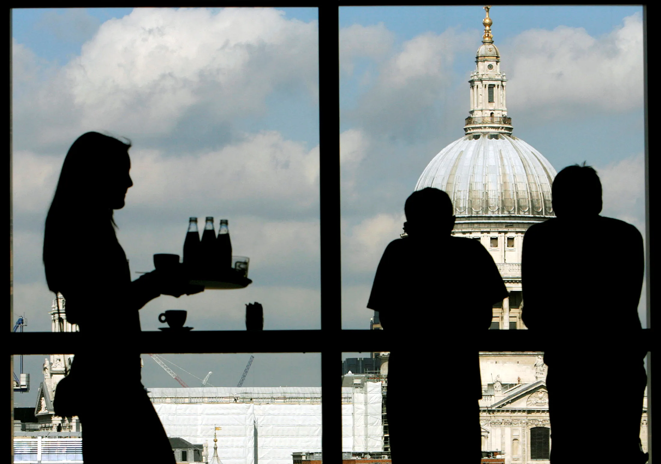 Visitors admire St.Paul's Cathedral from the restaurant floor of the Tate Modern gallery in London March 15, 2007. (Photo by Alessia Pierdomenico/Reuters)