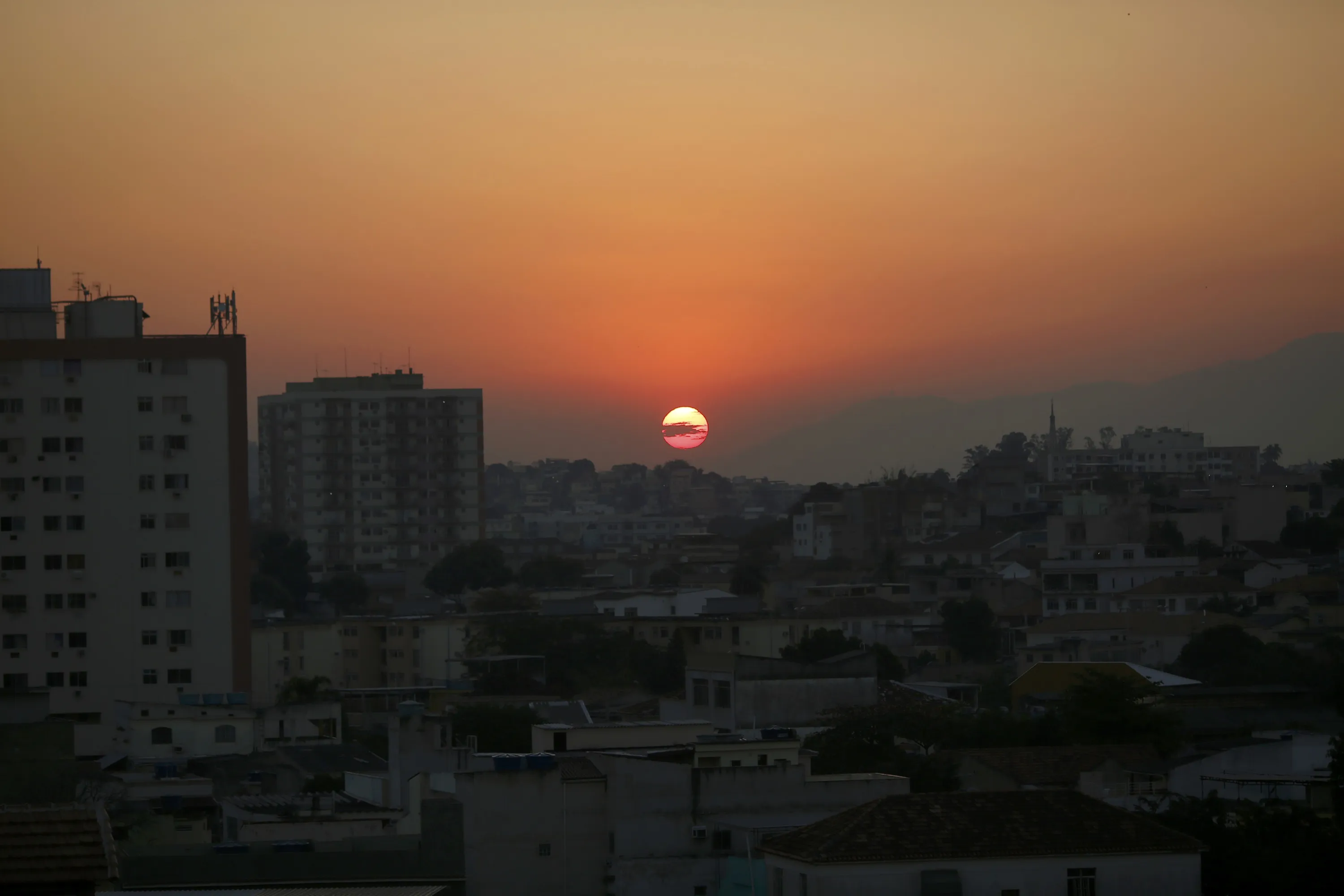 The sun sets behind the neighbourhoods adjoining the Olympic Stadium in Rio de Janeiro, Brazil on August 14, 2016. (Photo by Andrew Winning/Reuters)