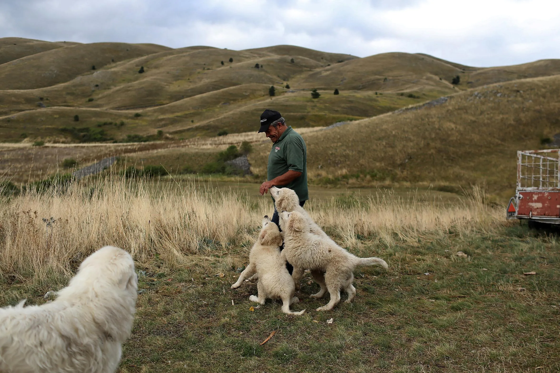 Domenico Ciccone greets his dogs as he arrives where some of his sheep spent the night near the town of Rocca Calascio, close to Santo Stefano di Sessanio in the province of L'Aquila in Abruzzo, inside the national park of the Gran Sasso e Monti della Laga, Italy, September 8, 2016. (Photo by Siegfried Modola/Reuters)