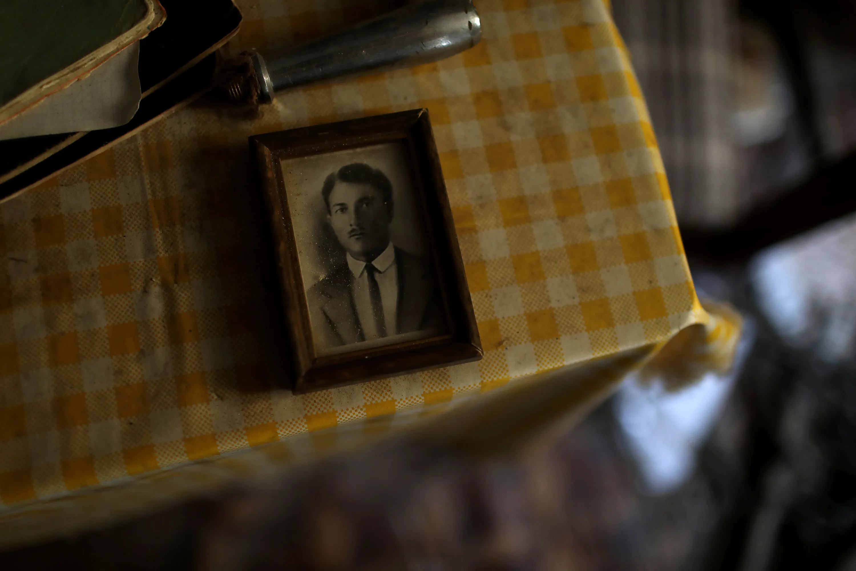A black and white photograph is seen in an abandoned building in the old centre of the town of Catsel Vecchio in the province of L'Aquila in Abruzzo, inside the national park of the Gran Sasso e Monti della Laga, Italy, September 11, 2016. (Photo by Siegfried Modola/Reuters)