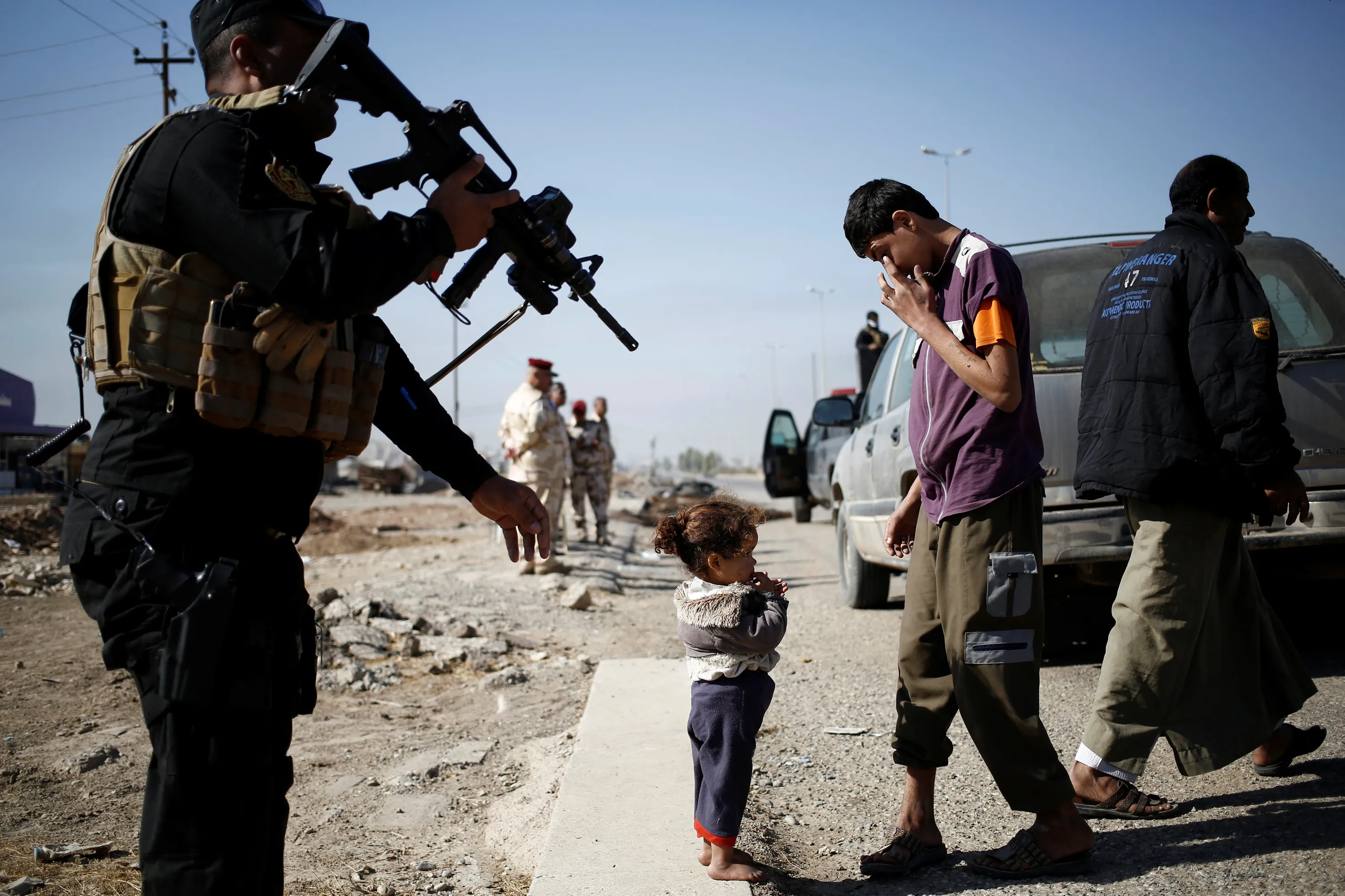 A girl who just fled Samah district of eastern Mosul stands with a relative as she arrives at Iraqi Special Forces checkpoint in Kokjali, east of Mosul, Iraq November 5, 2016. (Photo by Zohra Bensemra/Reuters)