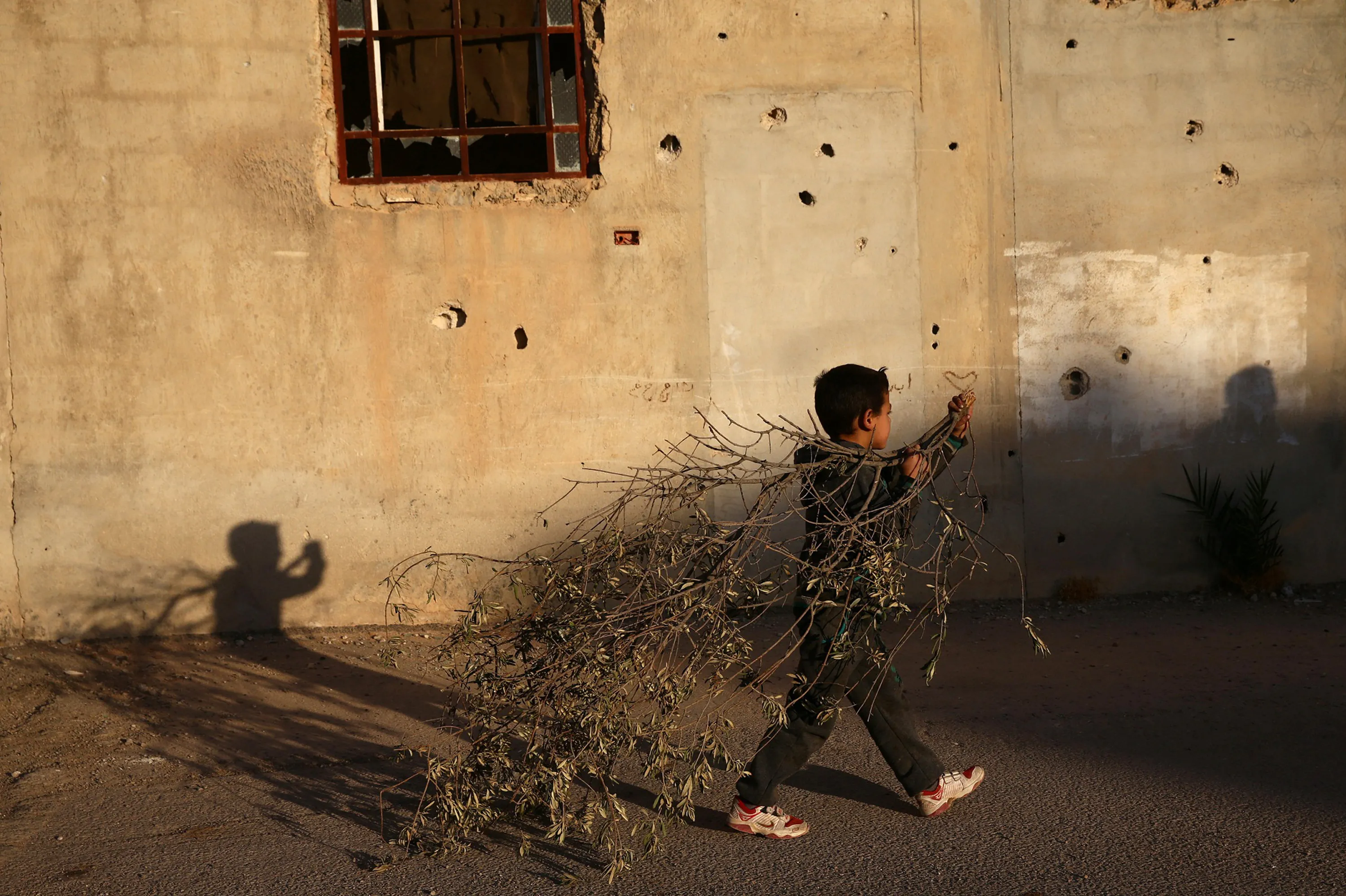 A boy pulls a tree branch to be used for heating and cooking in the rebel held besieged town of Douma, eastern Ghouta in Damascus, Syria November 1, 2016. (Photo by Bassam Khabieh/Reuters)