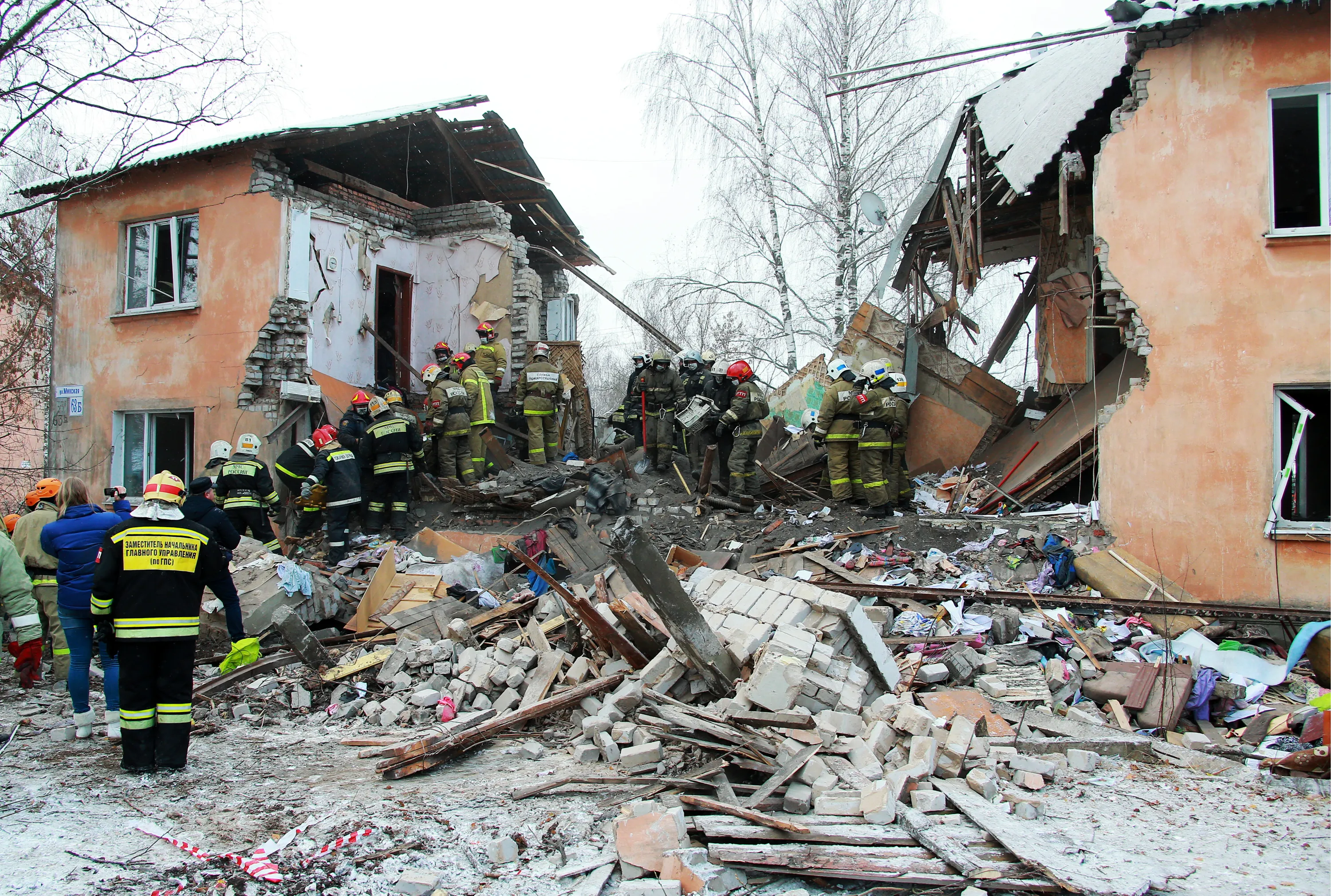 In this Sunday, November 6, 2016 photo, emergency rescue teams dig through rubble after an explosion at brick building in Ivanovo, 250 kilometers (150 miles) northeast of Moscow, Russia. Russian emergency officials say the explosion was caused by a gas leak in the apartment building shortly before dawn. (Photo by TASS/Barcroft Images)