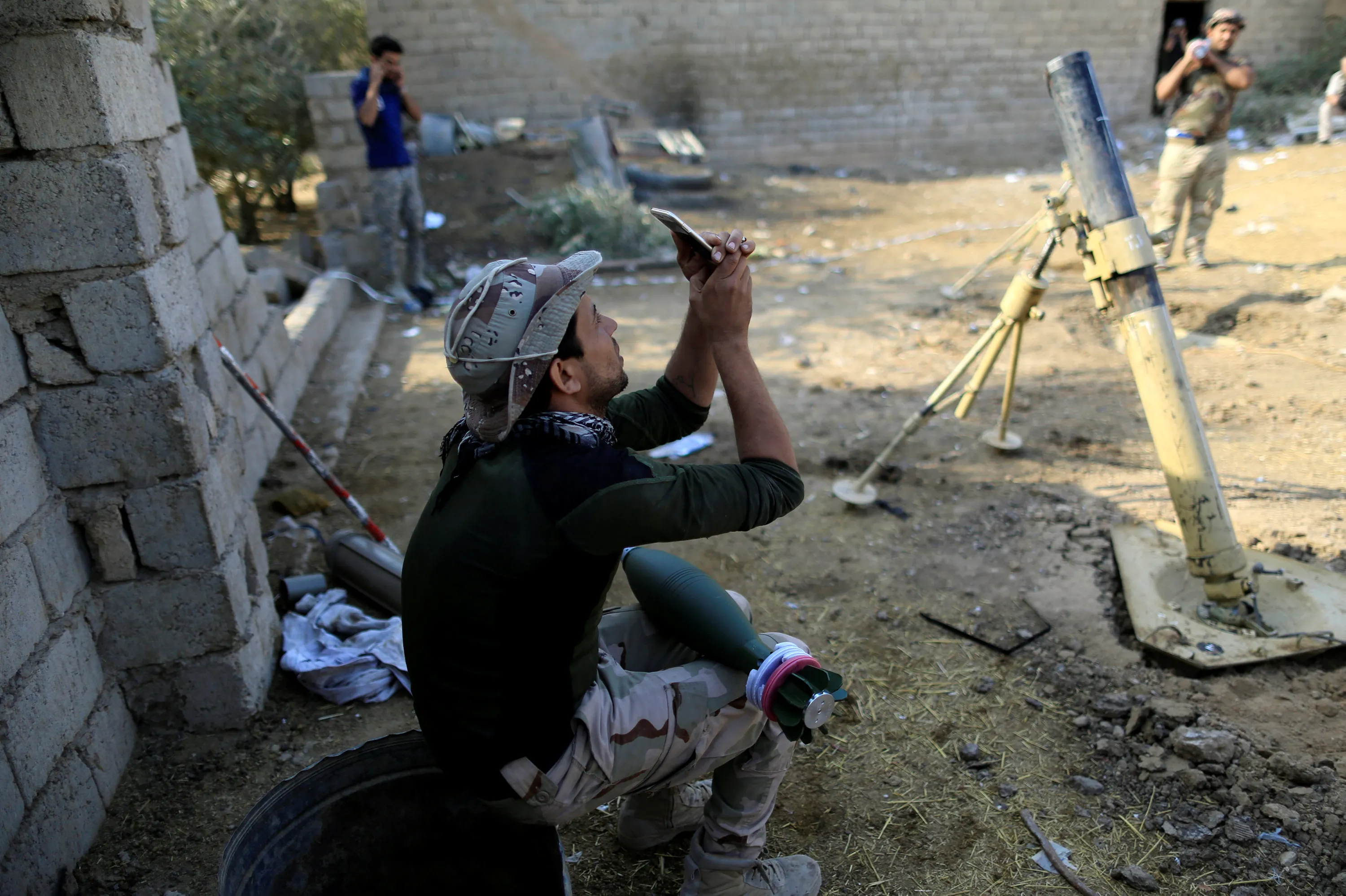A soldier takes a selfie as rocket lies on his thigh during fighting with Islamic States militants, in the Shahrazad disrict of eastern Mosul, Iraq, November 6, 2016. (Photo by Zohra Bensemra/Reuters)