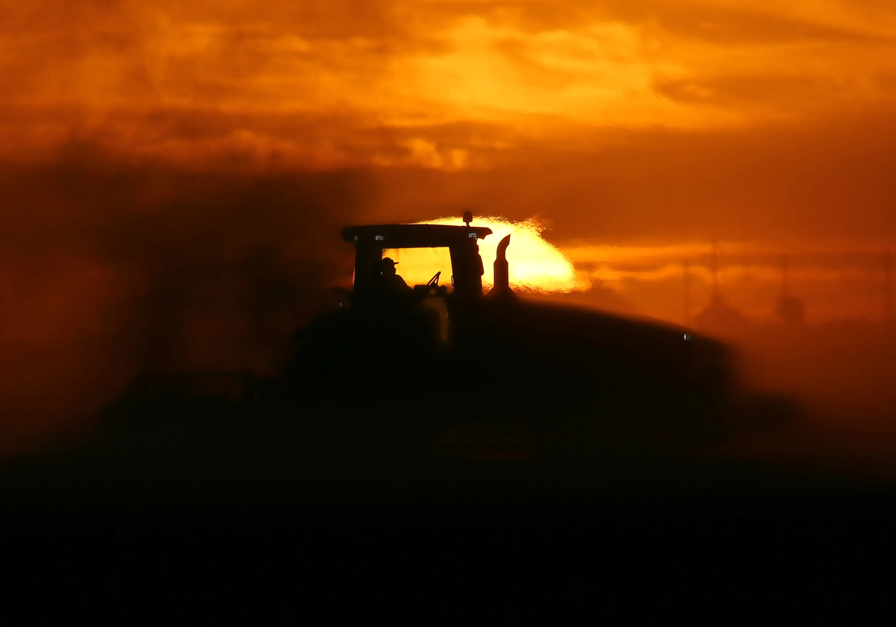 A man drives a tractor plowing a field at sunrise near Calexico, California, United States, October 8, 2016. (Photo by Mike Blake/Reuters)