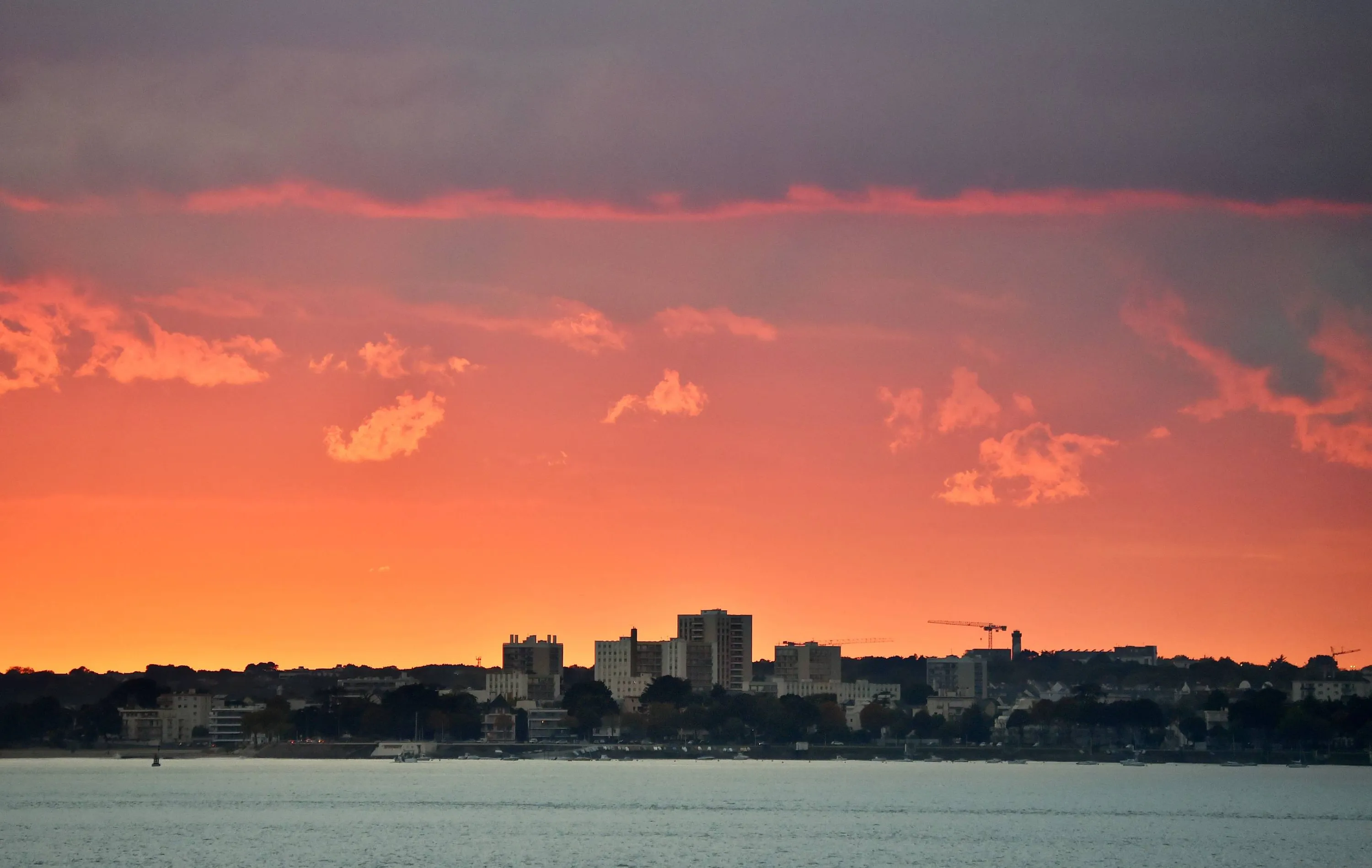 A picture taken on October 20, 2016 shows a sunset over the western French city of Saint-Nazaire. (Photo by Loic Venance/AFP Photo)
