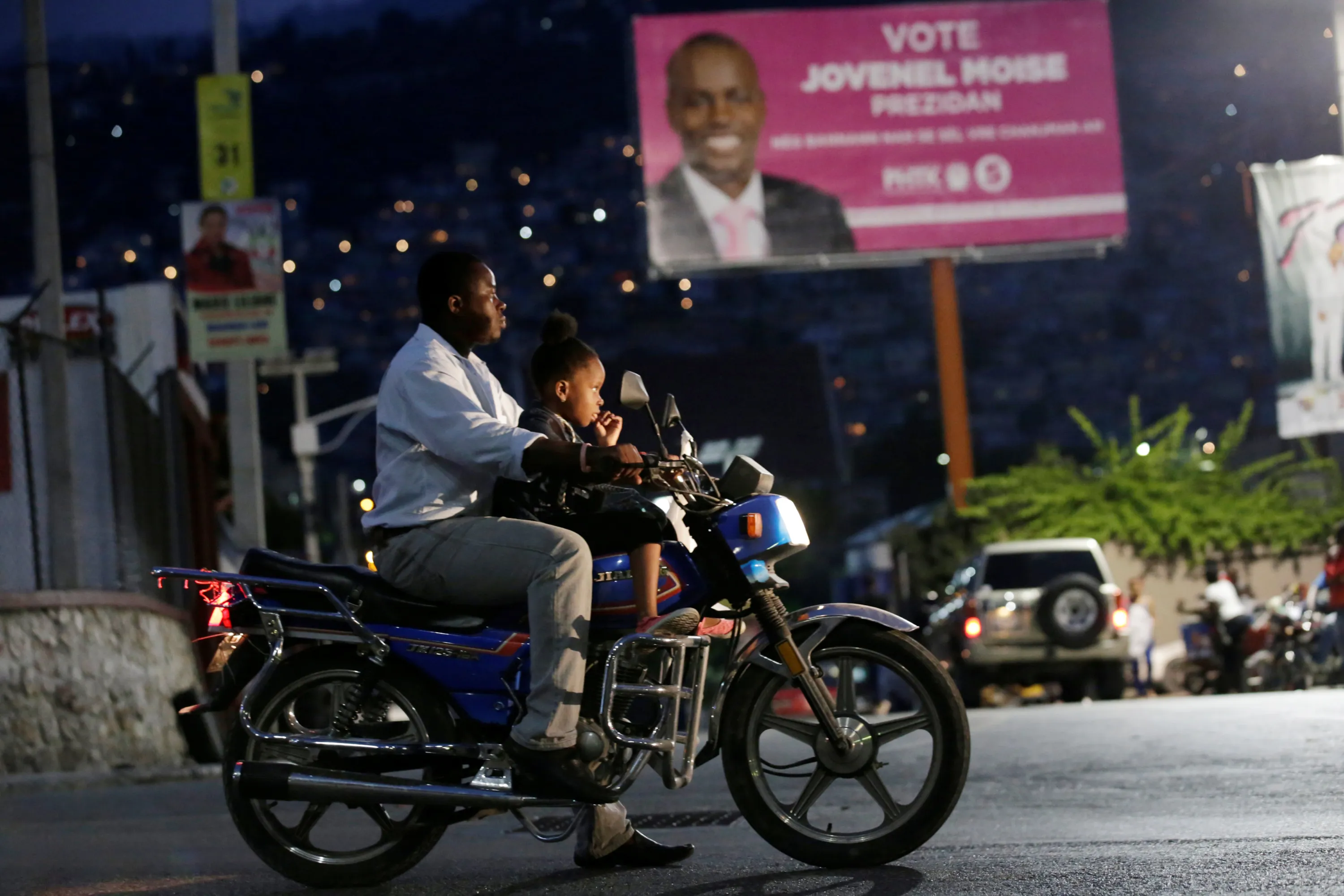 A man and a girl ride a motorbike next to a billboard advertising presidential candidate Jovenel Moise of the PHTK party, in Port-au-Prince, Haiti, November 6, 2016. (Photo by Andres Martinez Casares/Reuters)