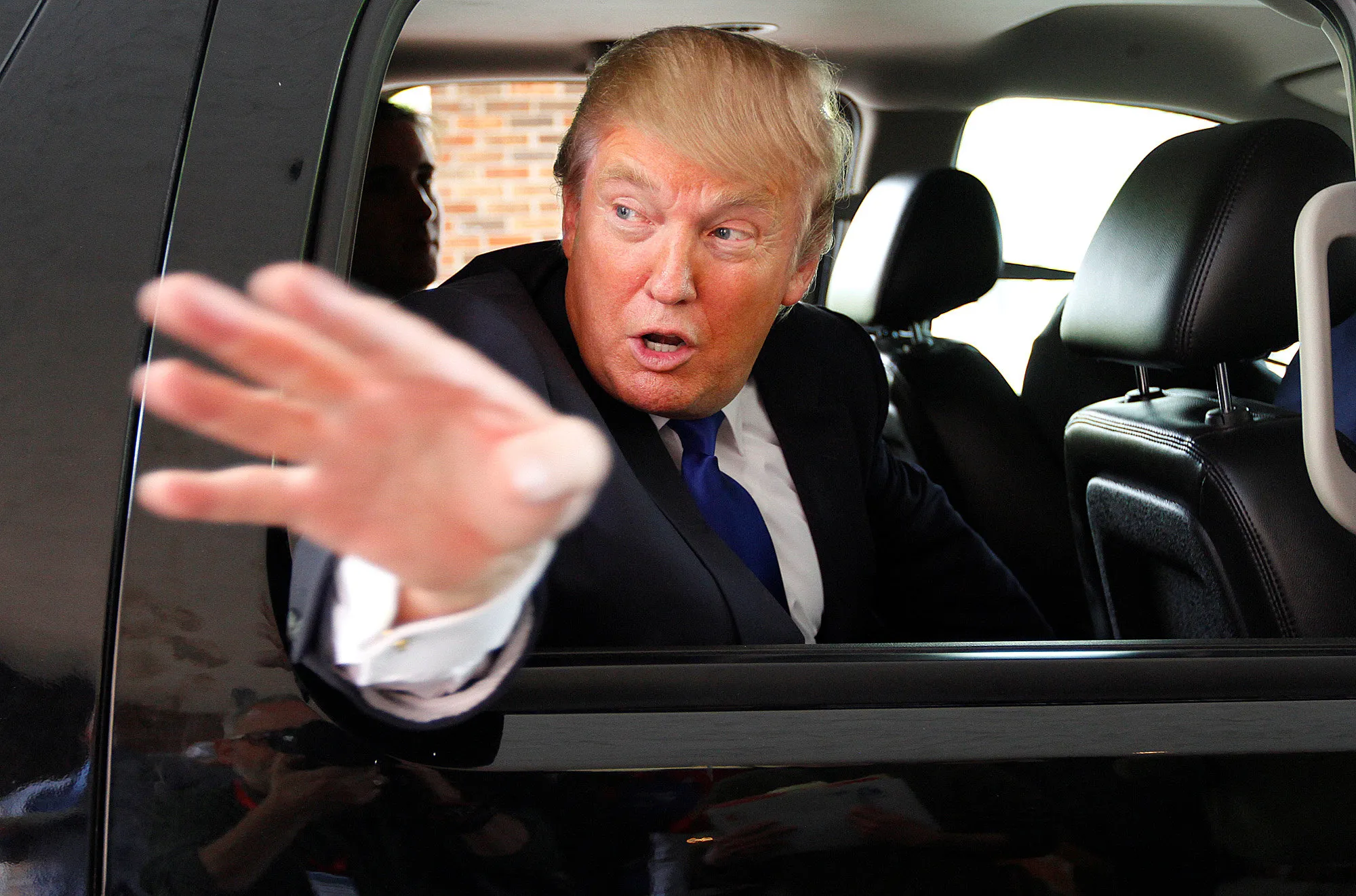Real estate magnate Donald Trump waves as he leaves a Greater Nashua Chamber of Commerce business expo at the Radisson Hotel in Nashua, New Hampshire, May 11, 2011. (Photo by Don Himsel/Reuters)